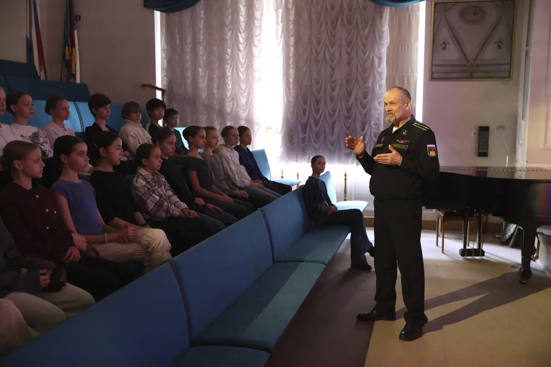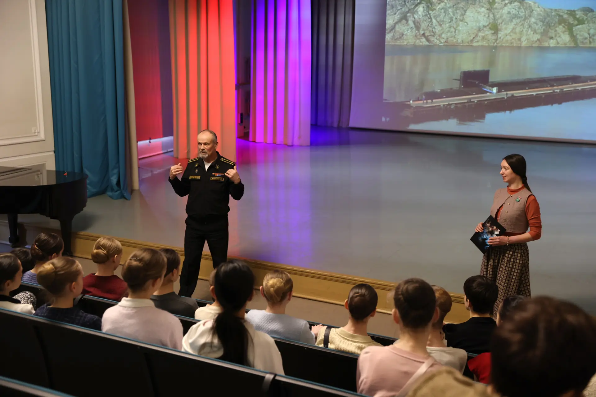 Накануне в гостях у Академии побывал настоящий офицер-подводник – капитан второго ранга, педагог-воспитатель Нахимовского военно-морского училища, выпускник Новосибирского высшего военного командного училища, офицер Северного морского флота – Николай Петрович Мовчан. Встреча с воспитанниками 2/6 классов состоялась в Учебном театре и стала еще одной жемчужиной в гражданско-патриотическом цикле «Разговор со взрослым о важном». Диалог с Николаем Петровичем был посвящен таким важным жизненным ценностям, как семья, дом, товариществ, труд, уважение, ответственность, понимание «что такое хорошо и что такое плохо», и, конечно же, понятию Родина в широком смысле.