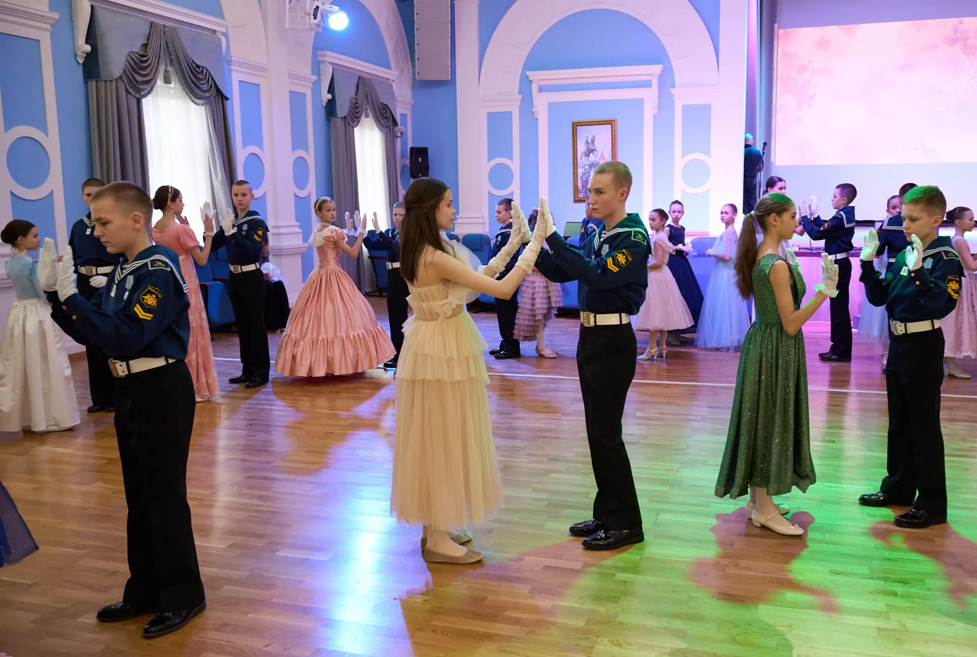 В День моряка-подводника – 19 марта в Парадном зале Нахимовского военно-морского училища состоялся Весенний бал для воспитанников 2 учебного курса (6 класса) Училища и воспитанниц параллелей 1/5, 2/6 и 3/7 Б классов Академии.