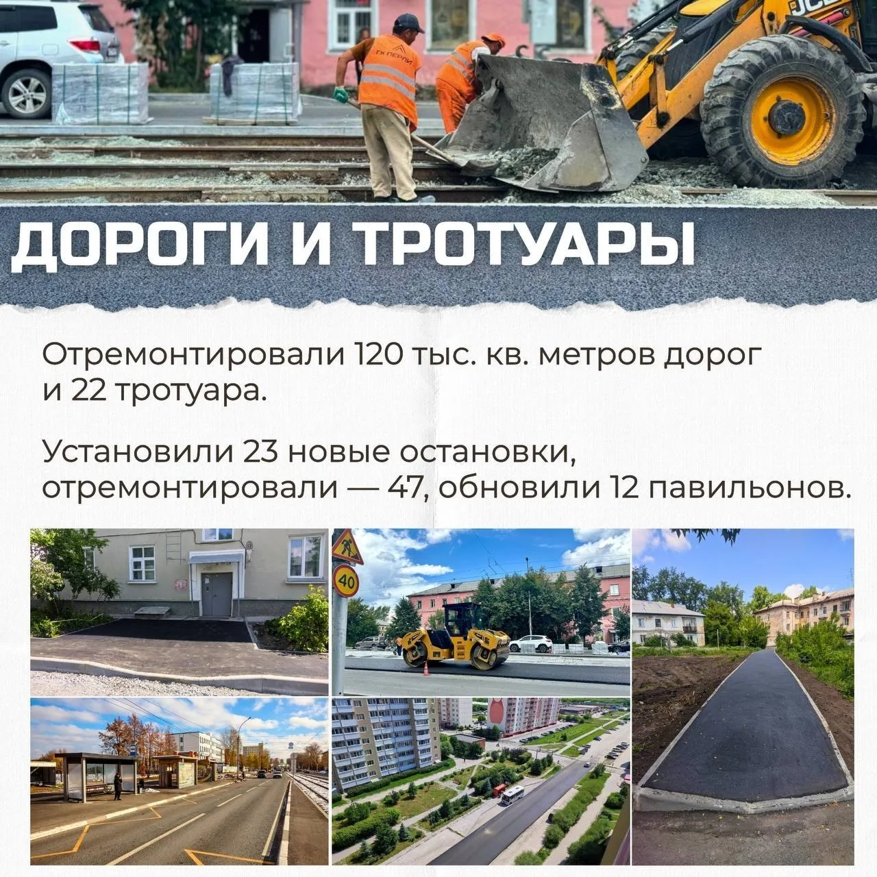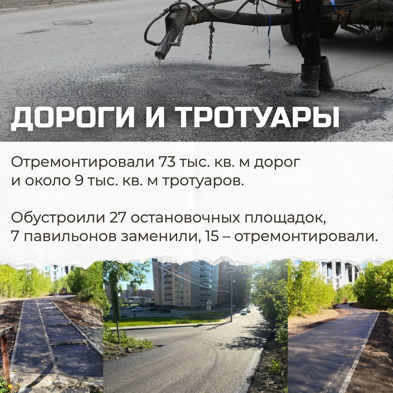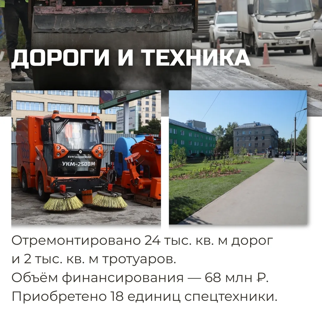 — Отремонтировали 73 тыс. кв. м дорог и около 9 тыс. кв. м тротуаров;