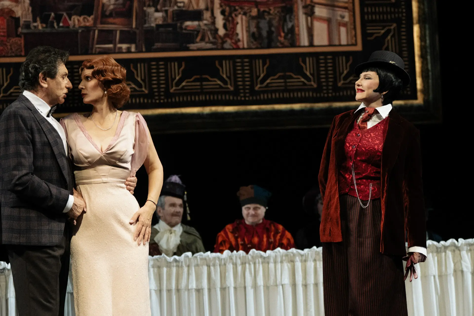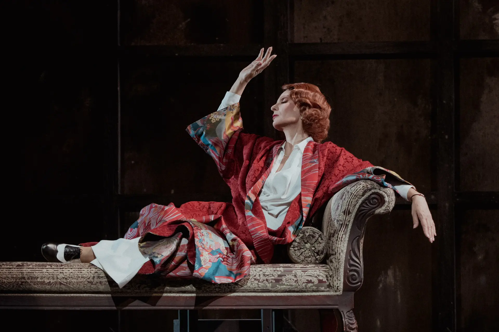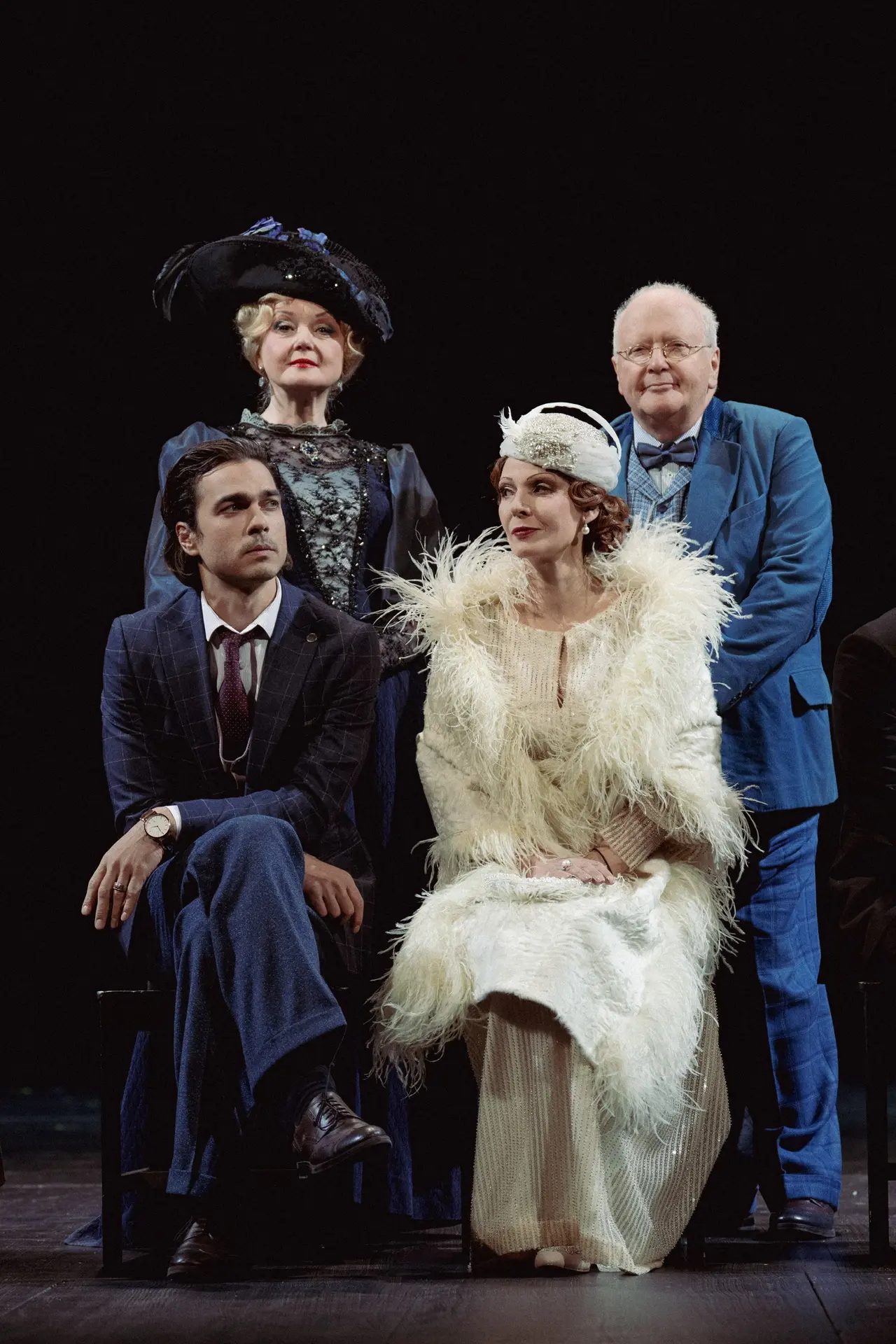 Постановка была выпущена 5 лет назад – 26 марта 2021 года – в год столетия Театра Вахтангова. В спектакле заняты ведущие мастера: в роли Джулии Лэмберт – народная артистка России Лидия Вележева, в роли Майкла Госселина – народный артист России Евгений Князев, в роли лорда Чарлза Тэмерли – народный артист России Андрей Ильин.