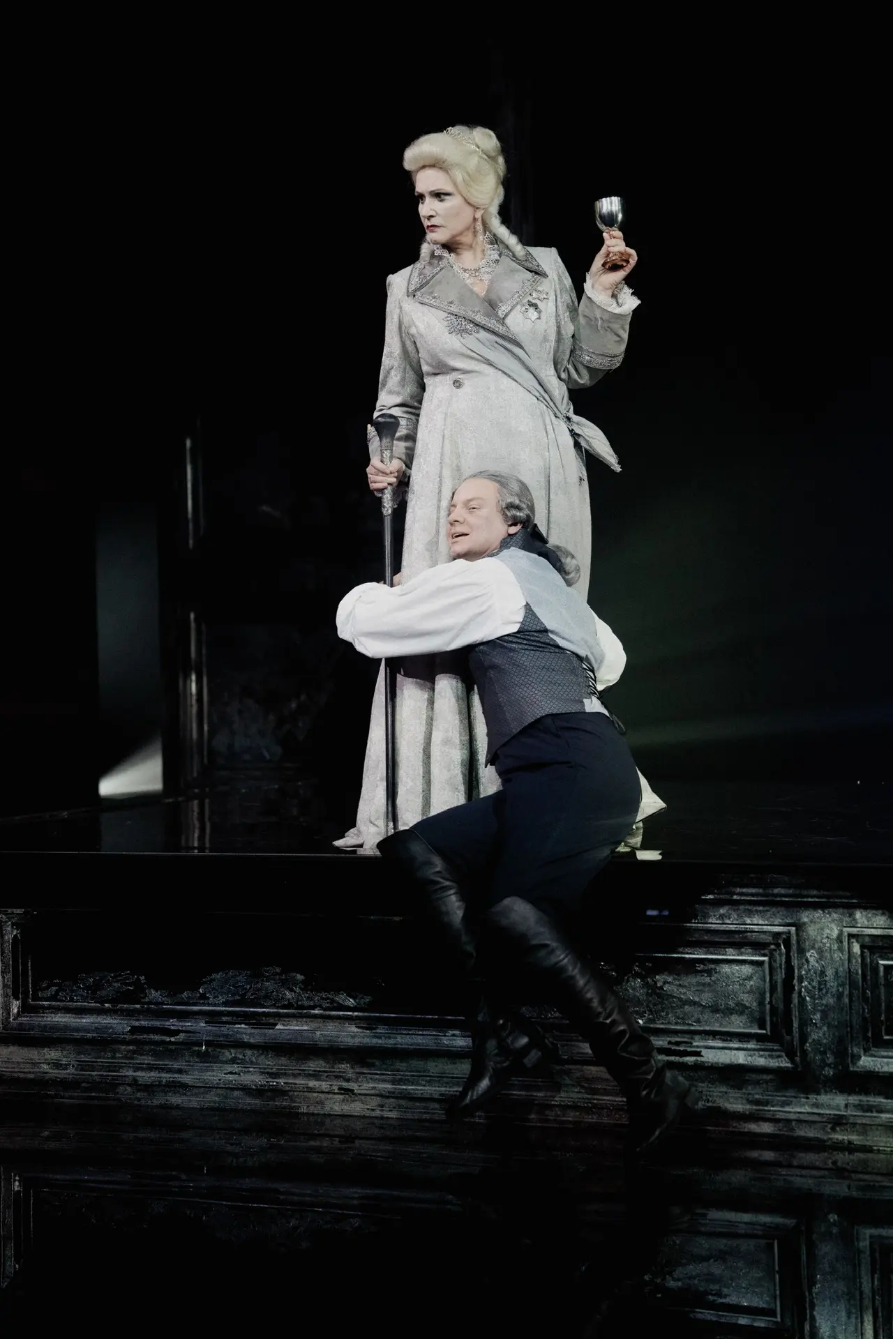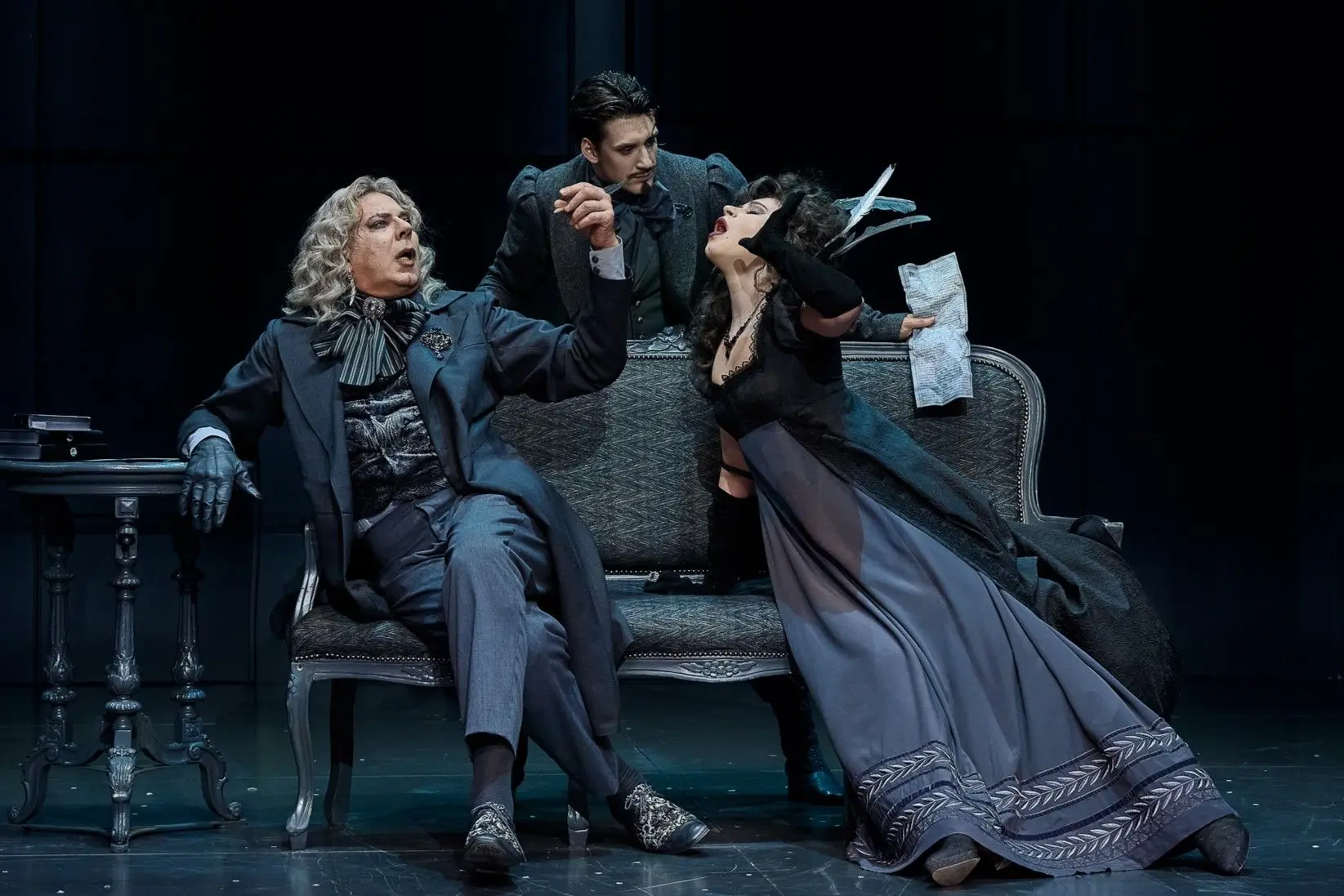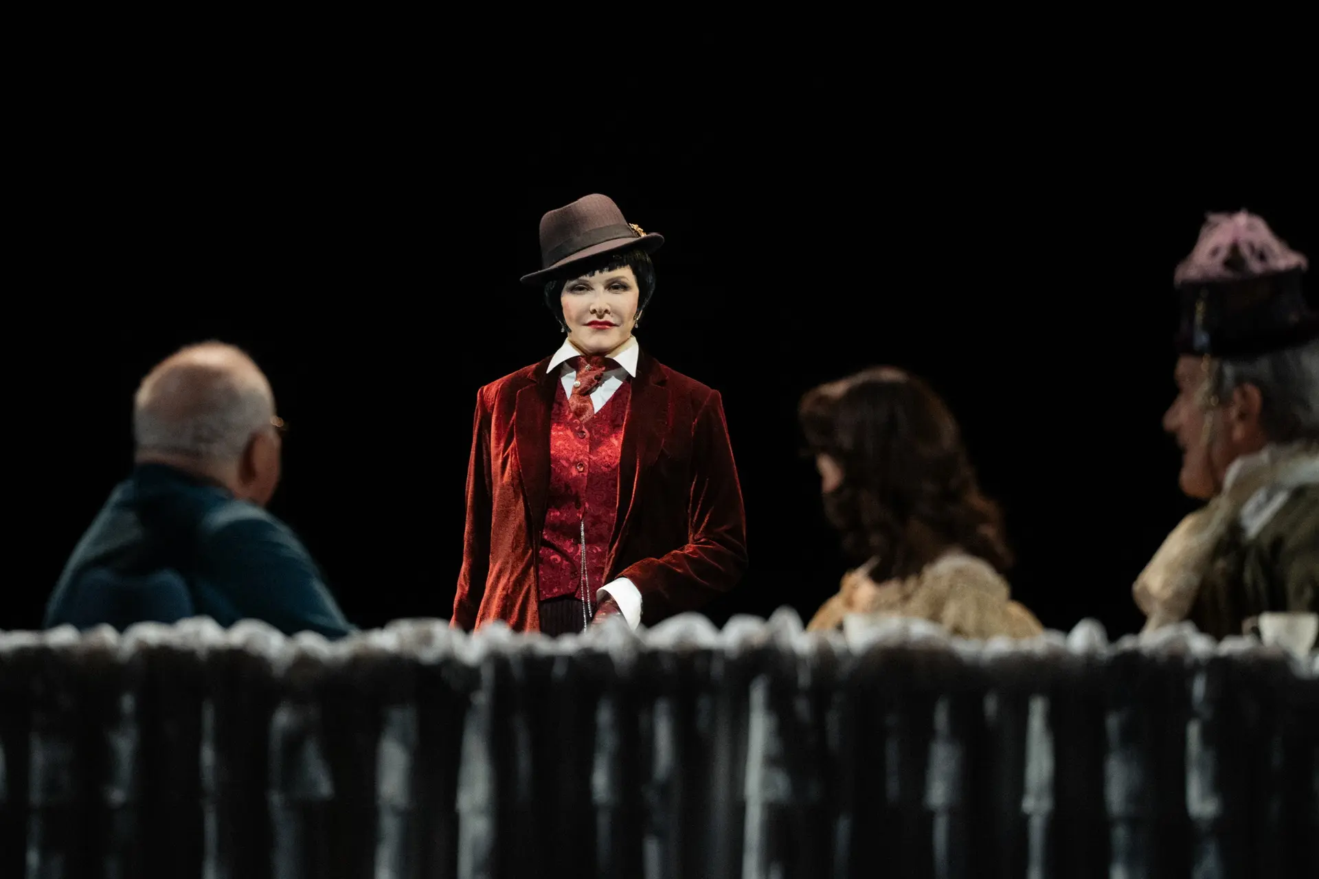 Постановка была выпущена 5 лет назад – 26 марта 2021 года – в год столетия Театра Вахтангова. В спектакле заняты ведущие мастера: в роли Джулии Лэмберт – народная артистка России Лидия Вележева, в роли Майкла Госселина – народный артист России Евгений Князев, в роли лорда Чарлза Тэмерли – народный артист России Андрей Ильин.