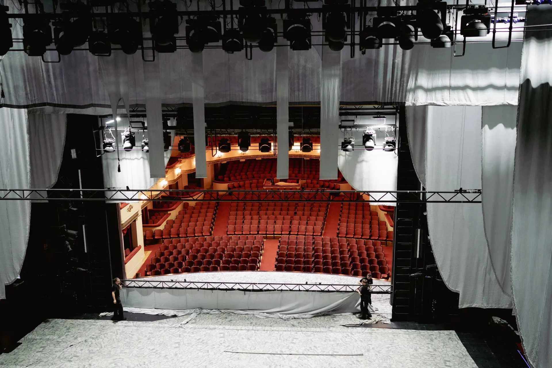 Как заметили многие зрители, с сегодняшнего дня и до 28 февраля нет спектаклей на Основной сцене. Потому что как раз сегодня из репетиционного пространства «Чердак» под крышей Театра Вахтангова на историческую сцену перешла команда режиссёра Олега Долина. Покидая «Чердак», хотим поделиться с вами некоторыми фотографиями процесса. Фотограф – Наталья Шорох.