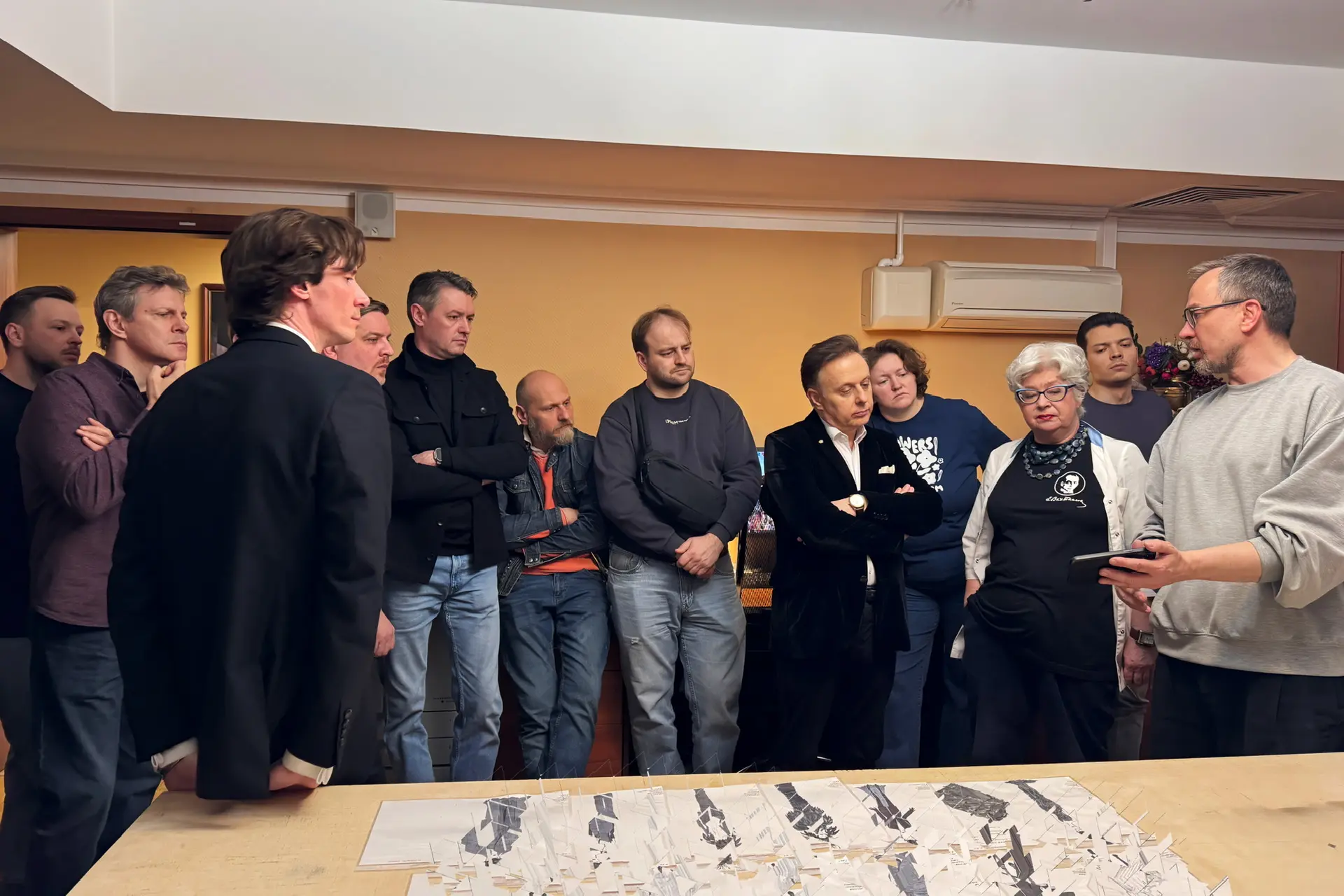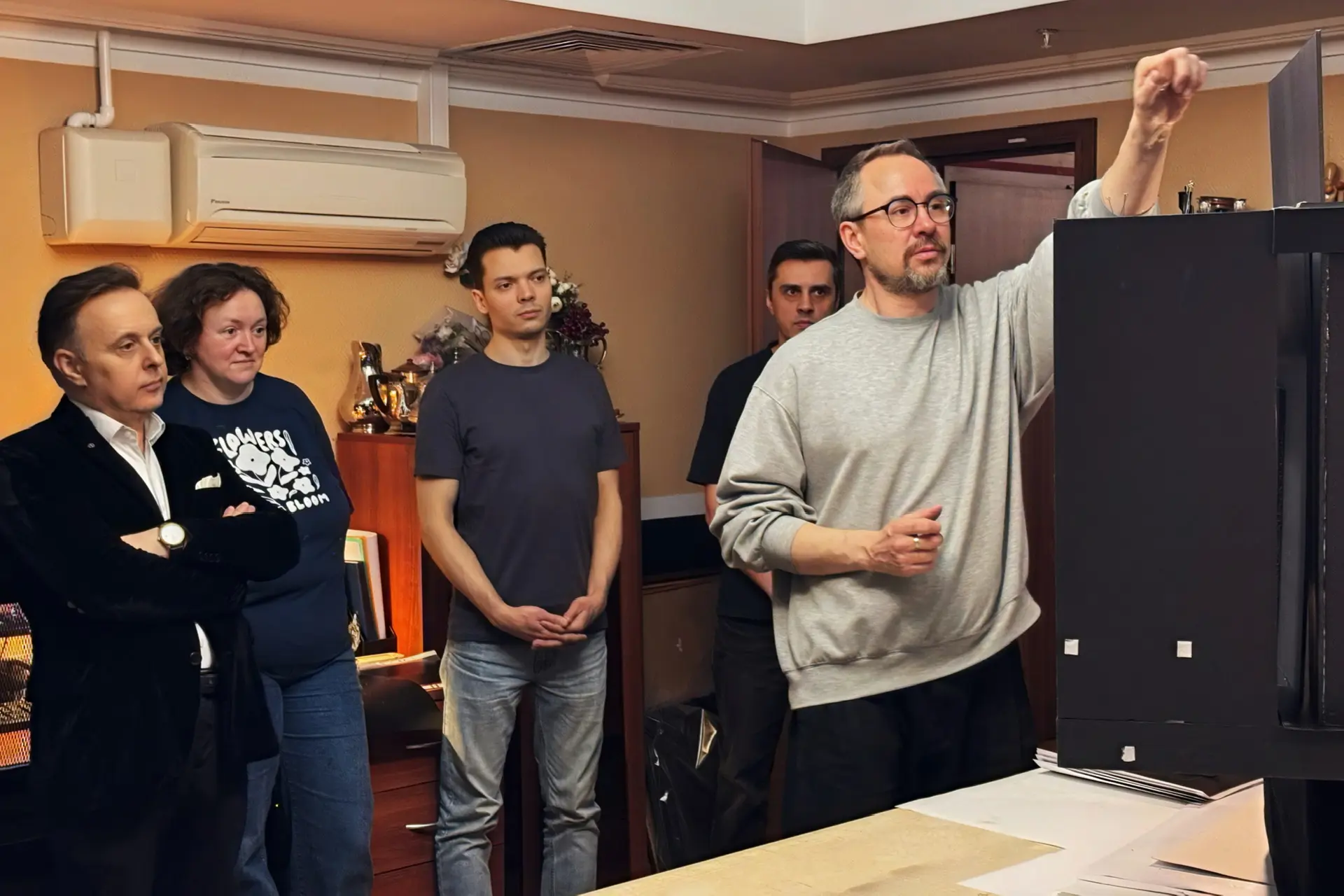 В эти выходные состоялась приёмка и защита макета декорации – чрезвычайно важный этап в рождении спектакля, переход от замысла к его воплощению. Наш маг и чародей – главный художник Максим Обрезков представил свой замысел, рассказал о визуальном решении пространства, о том, как оно будет работать на ключевые моменты повествования.