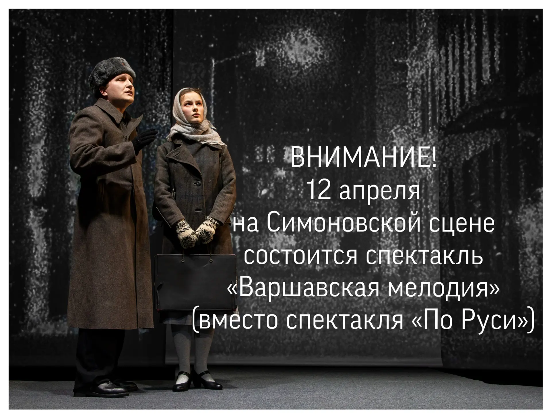 12 апреля вместо спектакля «По Руси» на Симоновской сцене состоится спектакль «Варшавская мелодия»!