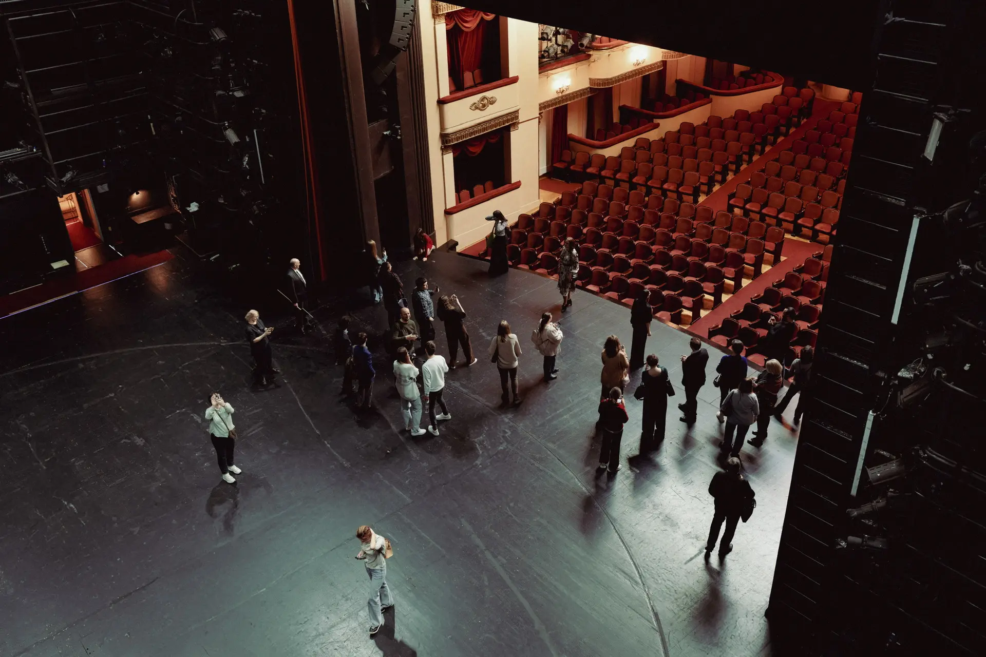 Что в этой экскурсии самое сложное для ведущих? Простроить маршруты для 5 больших групп так, чтобы все побывали в каждом пункте, при этом не столкнулись в узком коридоре и не сбились с пути? Да, непросто. Ведущие постоянно начеку: подглядывают и подслушивают. Система аудио-видео связи в Театре Вахтангова работает отлично, например, находясь в кабинете директора с группой можно краем глаза отследить на экране, что в это время другие путешественники уже зашли на Основную сцену, и ускорить или замедлить свой темп. Впрочем, это интересная задачка со звёздочкой, но отнюдь не самая трудная. Гораздо сложнее: не начать рассказывать по 3-4 часа, вместо 2. Благо, есть, о чём. И зрители готовы слушать, что особенно важно!