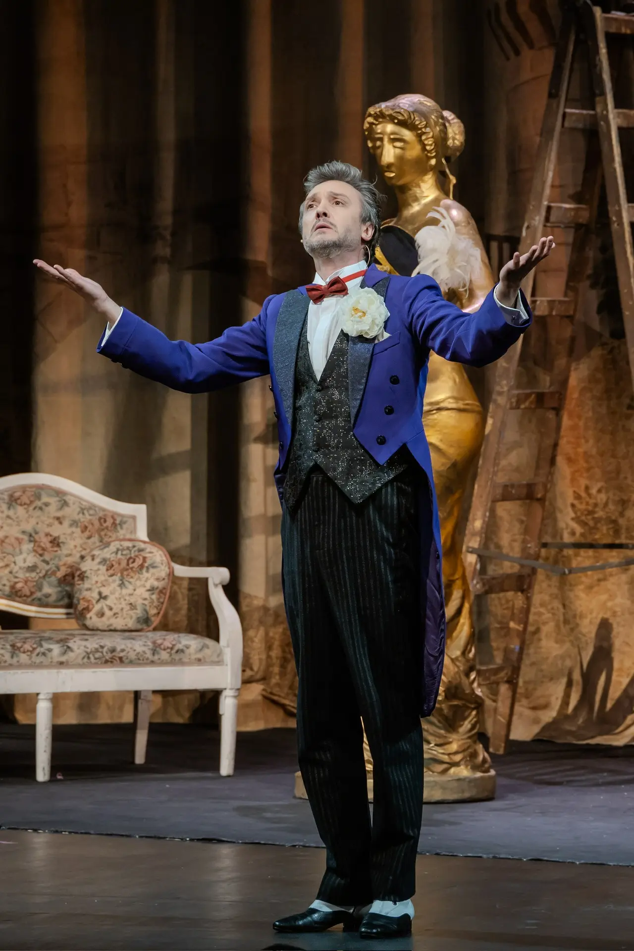 Андрей Барило ранее играл роль влюблённого Шамплатро, теперь он – хитрый Директор оперетты.