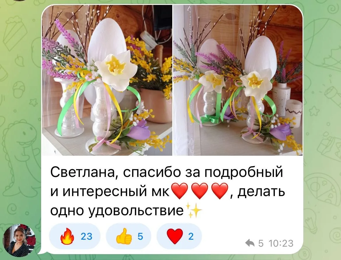 Мои дорогие, читаешь вот такие сообщения и так хорошо на душе. Это моя мечта и большая цель в жизни, чтобы женщины могли реализовываться в любимом деле. Чтобы это их поддерживало и приносило пусть даже небольшой, но приятных доход.