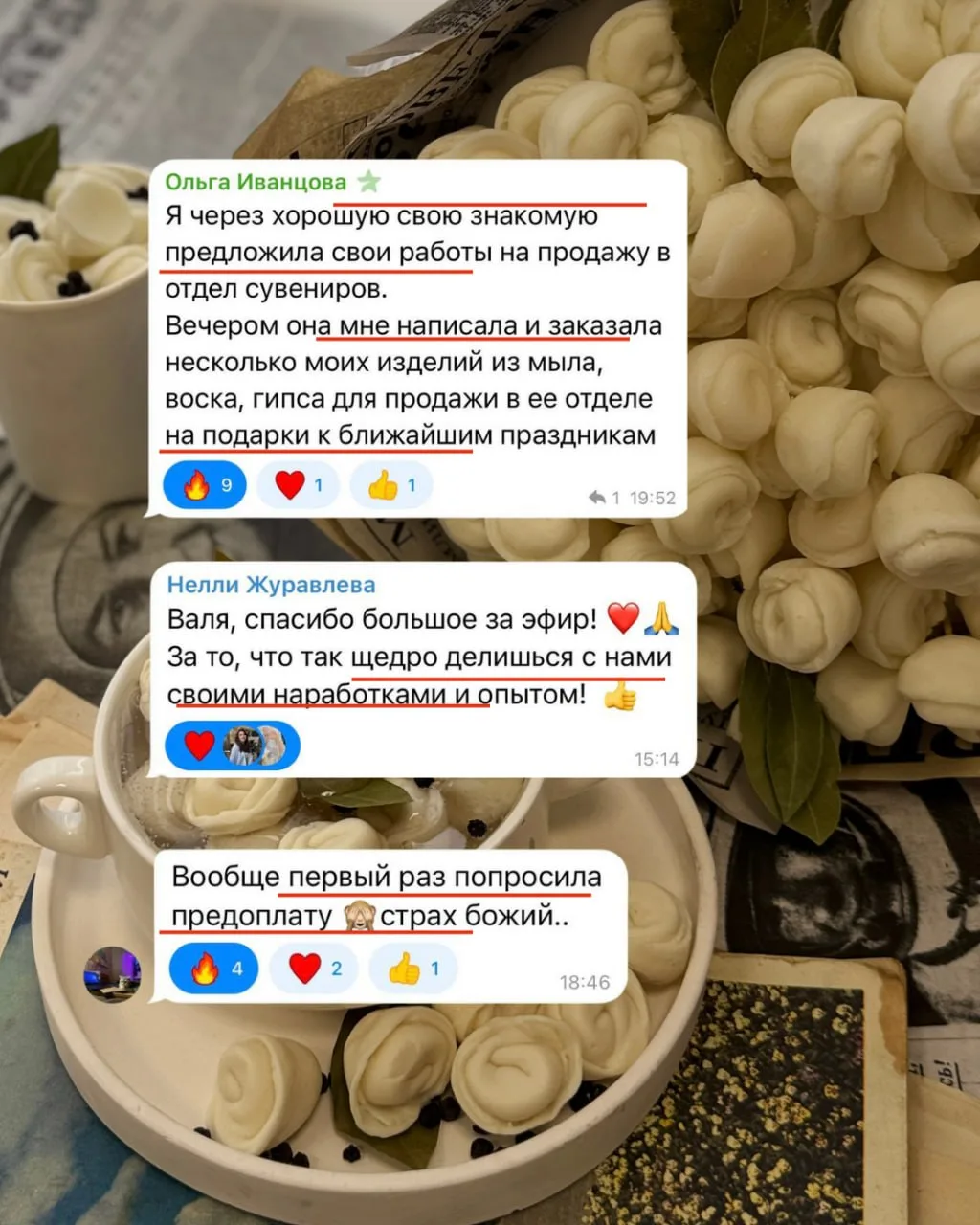 Знаете почему у нас такие результаты? Потому что я не рассказываю про маркетинг из учебников, который только для больших брендов. Я говорю про то, что работает для тех, кто создаёт своими руками, делюсь личным опытом — как я сама прошла этот путь до стабильных продаж и школы, которая помогает тысячам мастериц.
