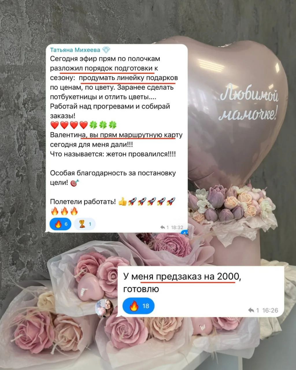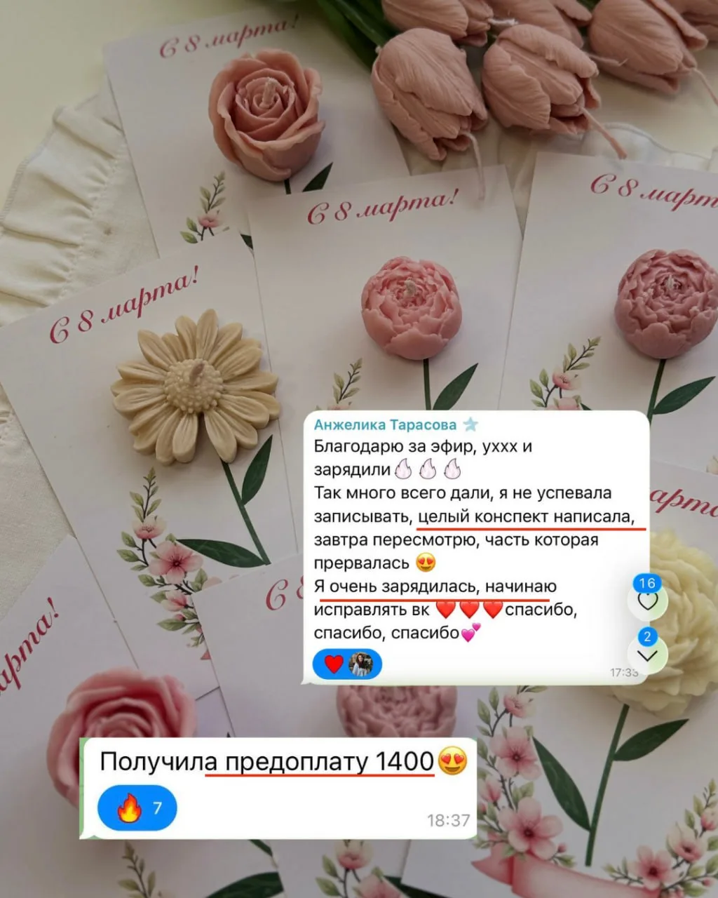 ➡️ Если вы пропустили открытый урок онлайн-интенсива "Как получить волну заказов на вау-подарки из свечей и цветов с 14 февраля по 8 марта" и вам нужно сначала попасть на него — регистрируйтесь