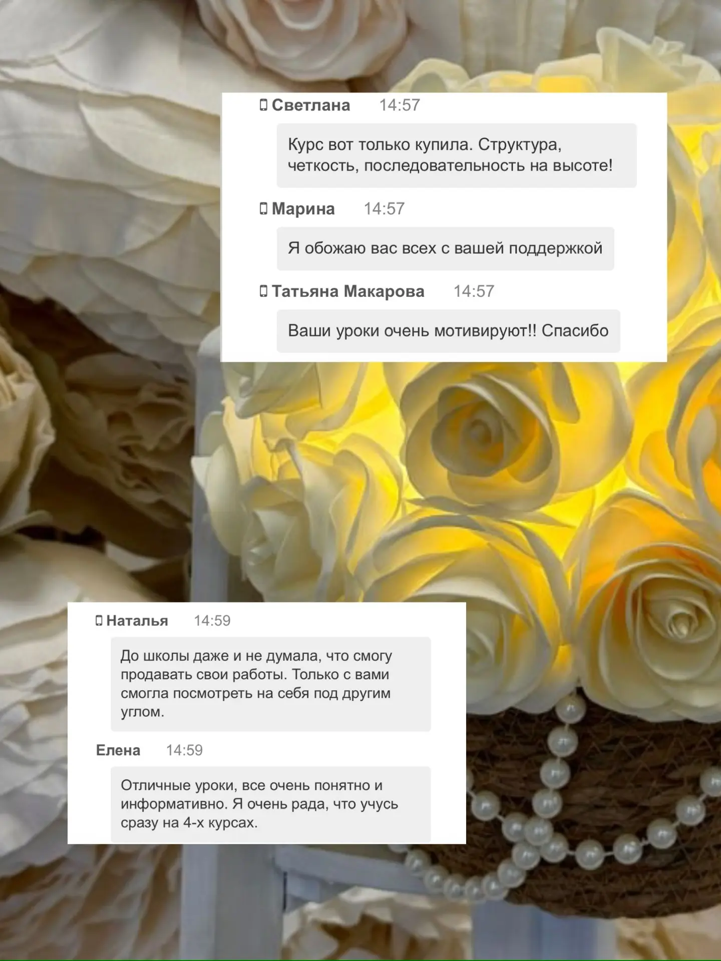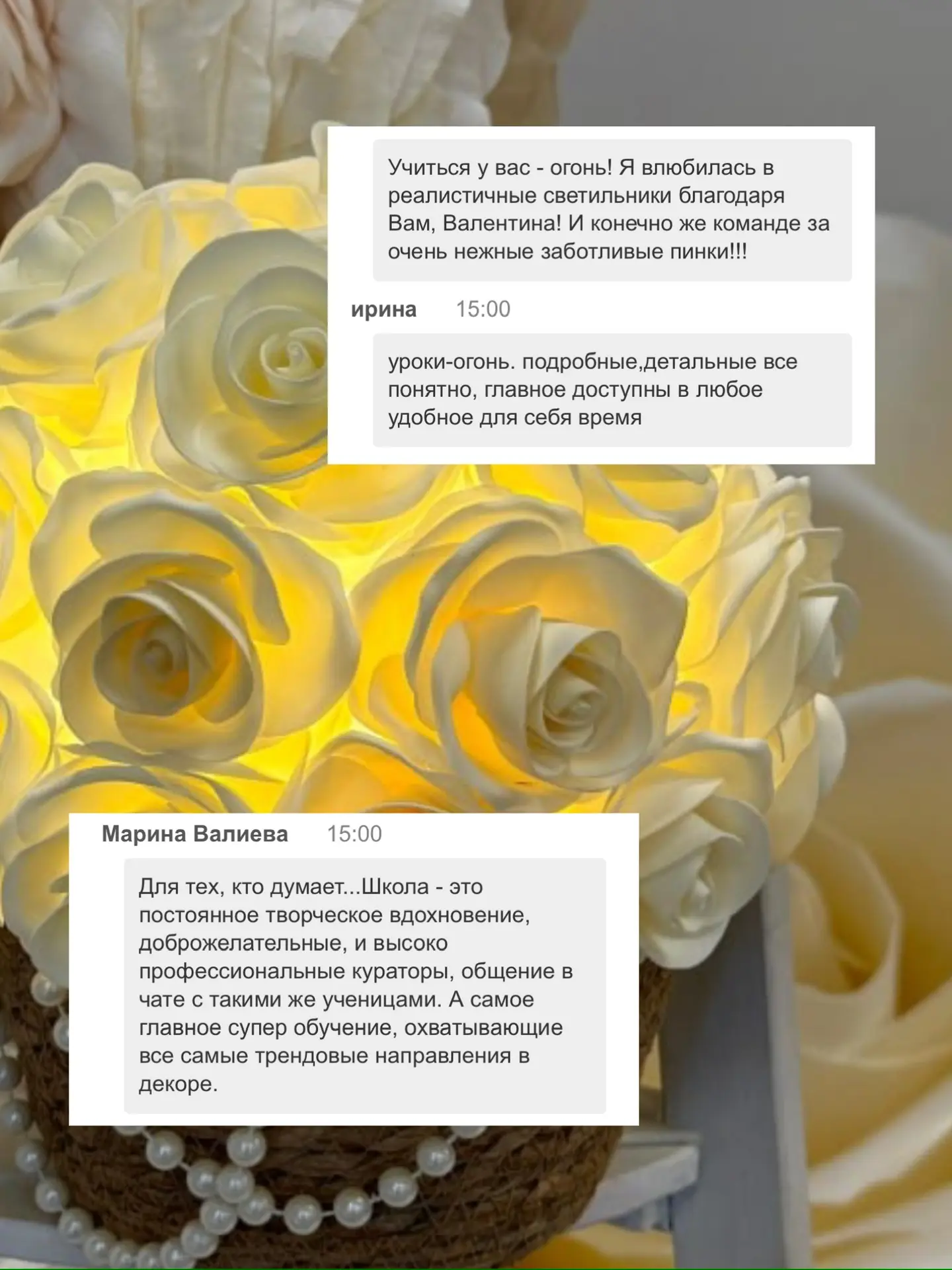 17-18 февраля провожу бесплатный 2-дневный мини-курс, где покажу три техники создания розы — от маленького светильника до большой фотозоны.