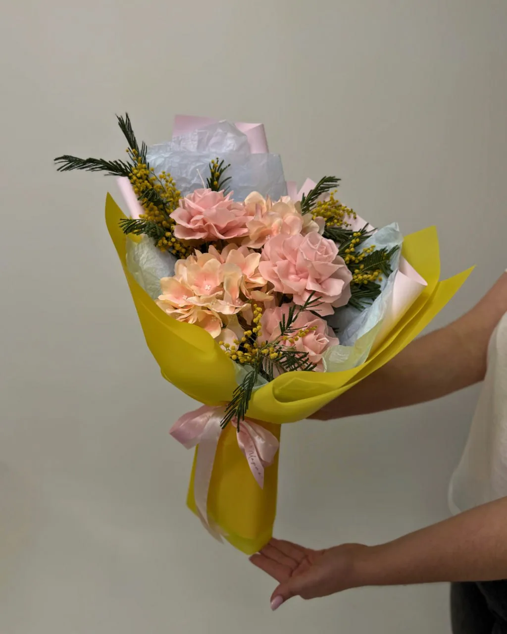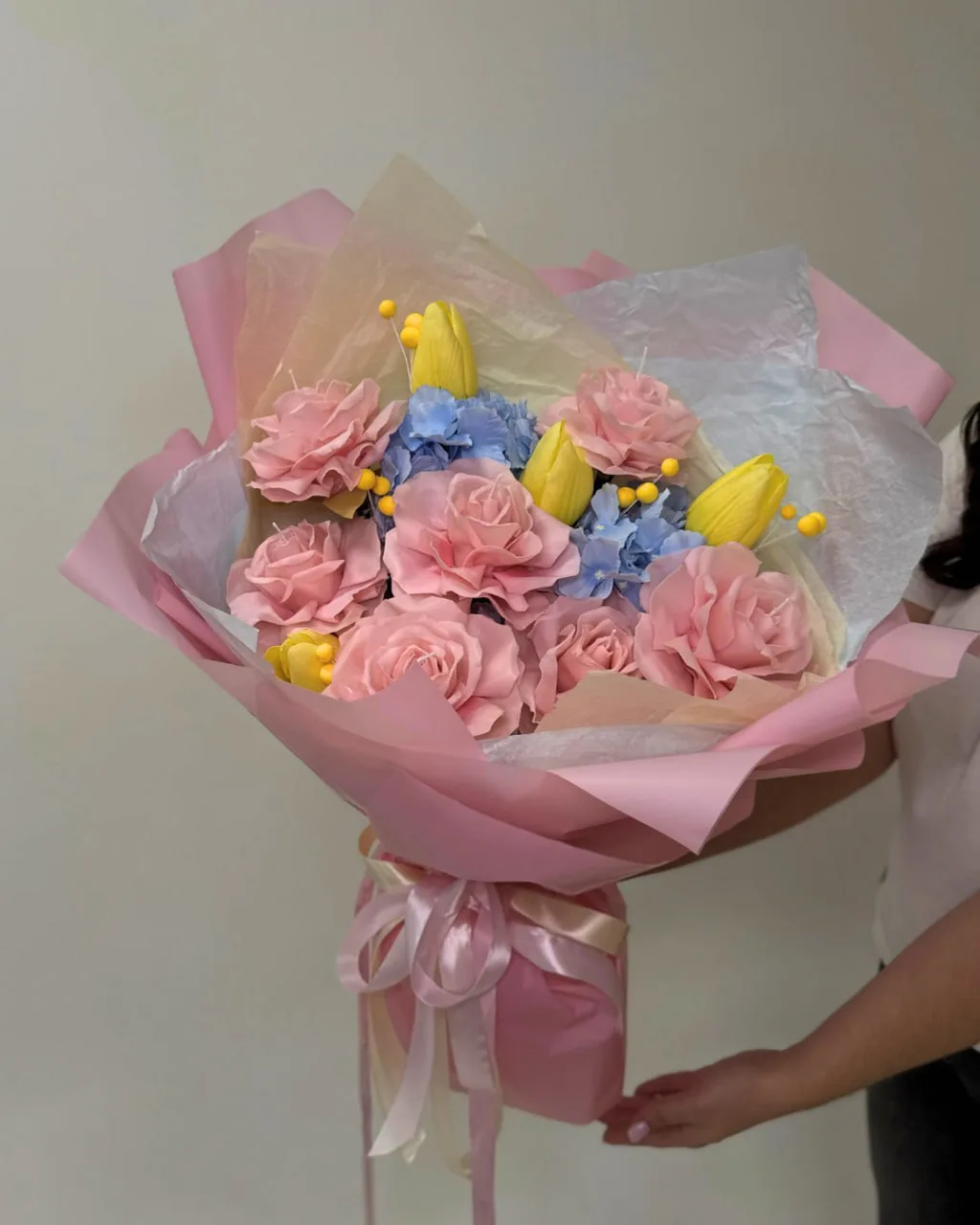 Наши цветы — будь то из фоамирана, воска или ткани — сами по себе нежные, весенние. И белая упаковка не затмевает их красоту, а подчеркивает чистоту фактуры и цвета