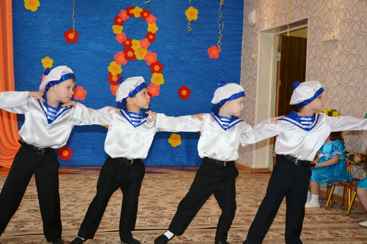 Танец «Джентльмены и Прекрасная Леди». Утренник, посвящённый Международному женскому дню.