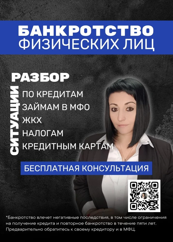 *Банкротство влечет негативные последствия, в том числе ограничения на получение кредита и повторное банкротство в течение пяти лет. Предварительно обратитесь к своему кредитору и в МФЦ.