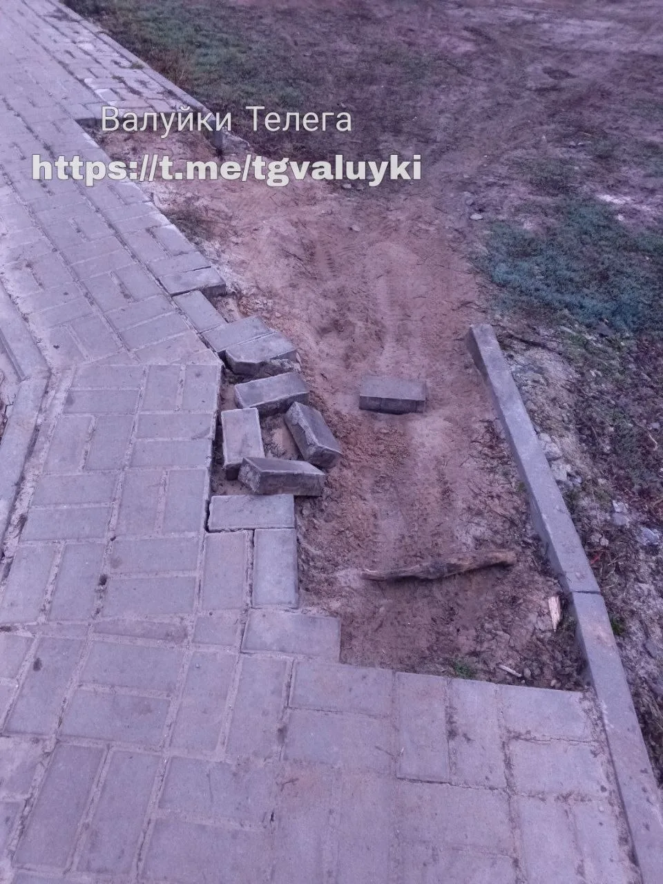 В Валуйках в районе подвесного моста потихоньку разбирают тротуар 👀