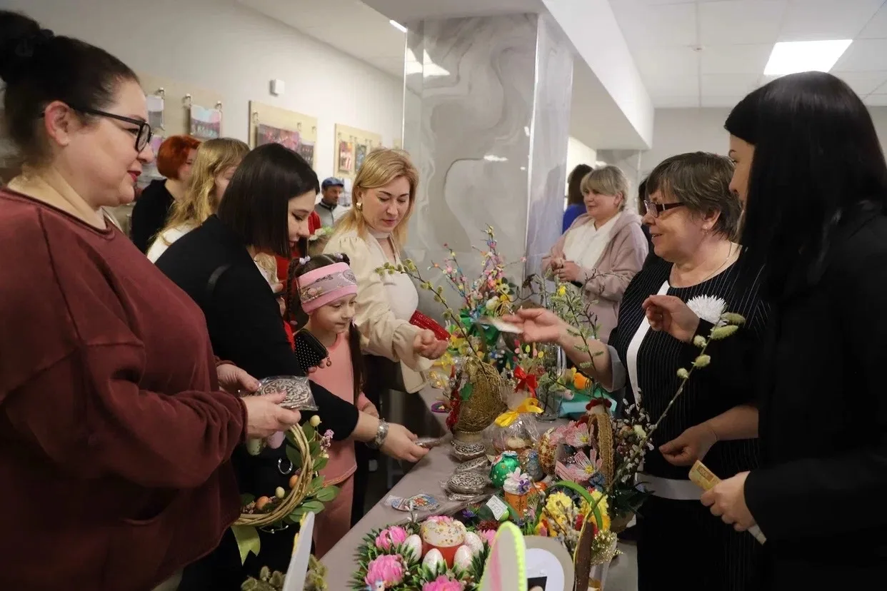 Школьники, педагоги и родители представили сувениры, сладости и пасхальные подарки ручной работы. Все собранные средства пойдут на лечение тяжелобольных детей.