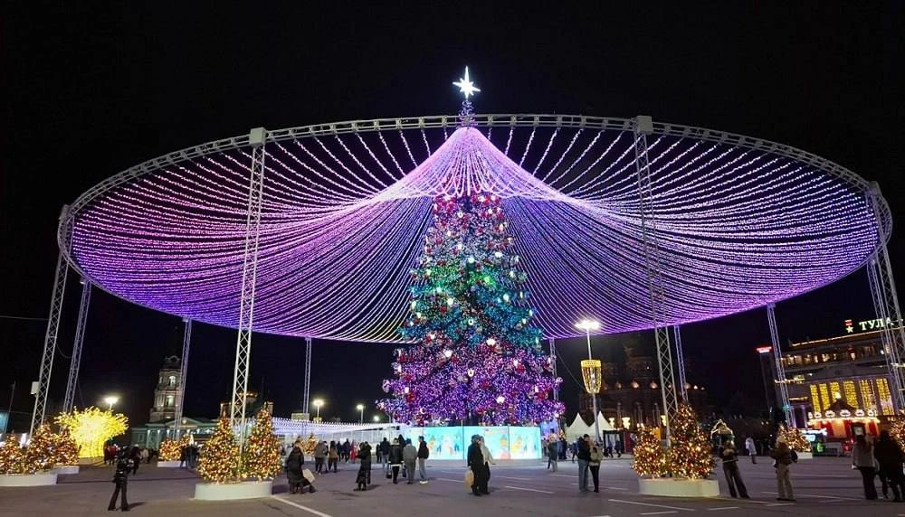 В Туле установили самую высокую в России искусственную елку — её высота достигла 32 метров, что было официально зафиксировано экспертом Книги рекордов России Александром Пересветом.