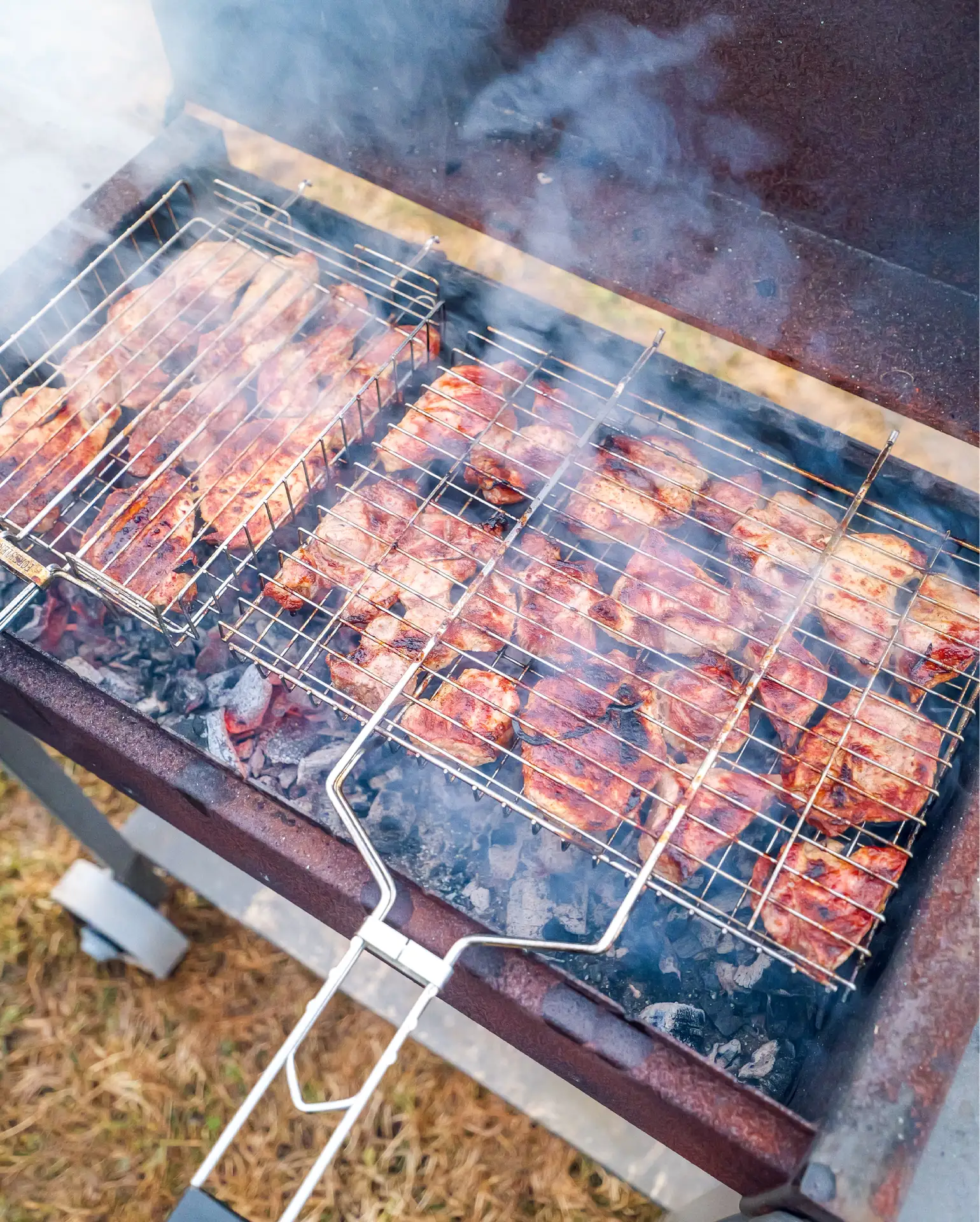 На участке тает последний снег. Мы жарим шашлыки и встречаем весну 🔥
