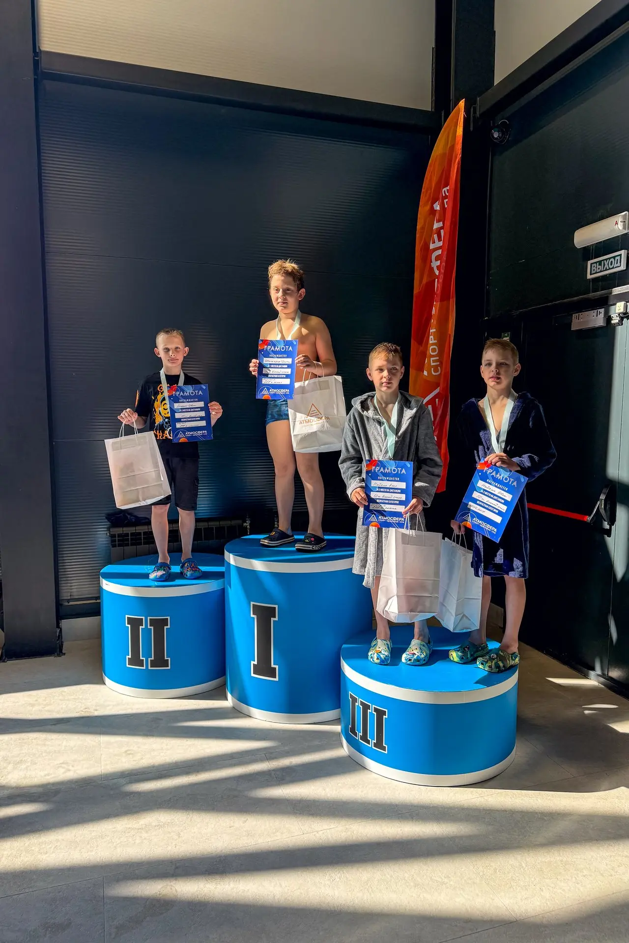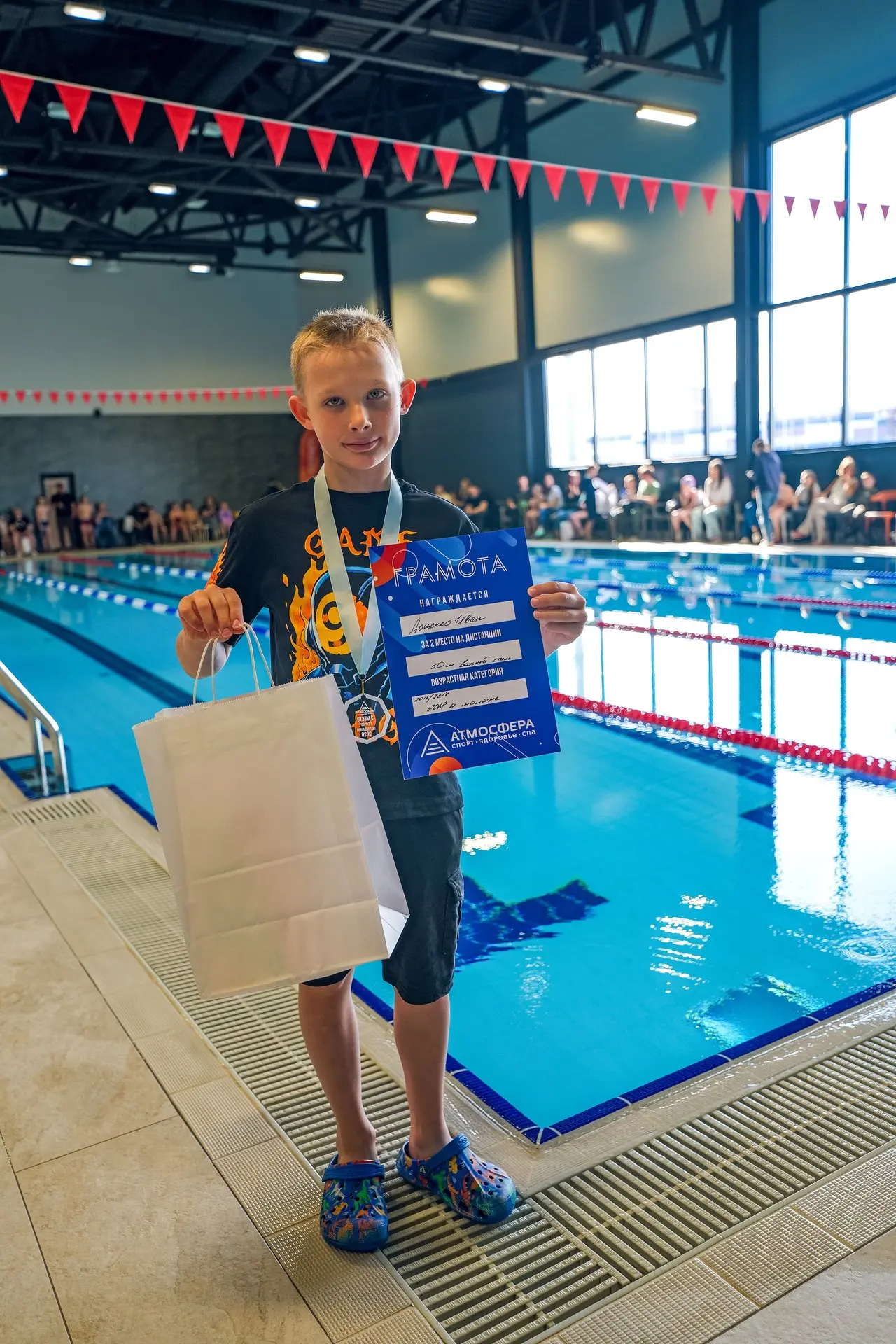 На этих выходных Ванька участвовал в соревнованиях по плаванию своего спортивного клуба. Всего было 5 заплывов с детьми его возрастной группы. В своём заплыве он приплыл первым. В общем зачёте занял второе место.