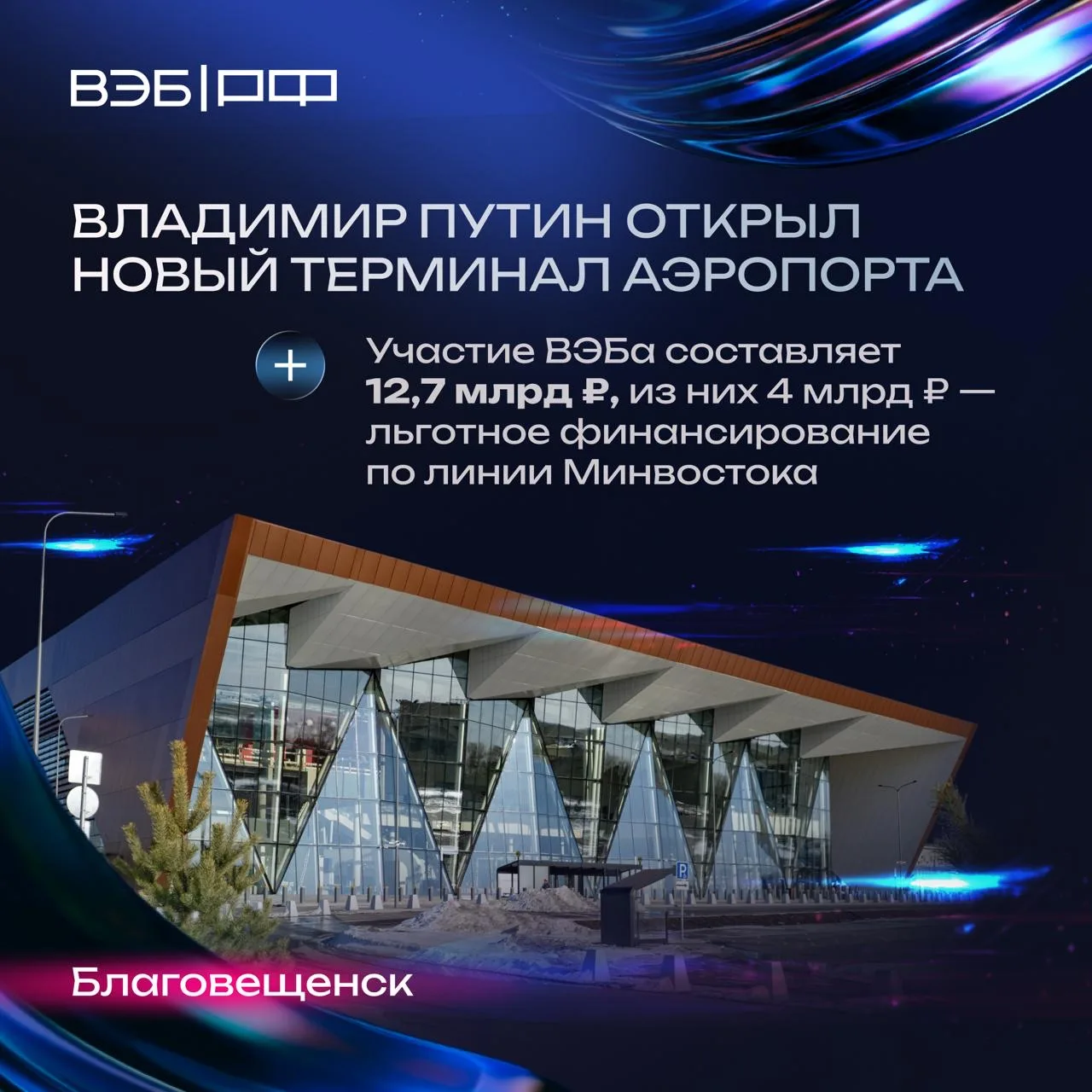 Новый аэропорт — один из ключевых объектов мастер-плана Благовещенска, который разработан при поддержке ВЭБа ✈️