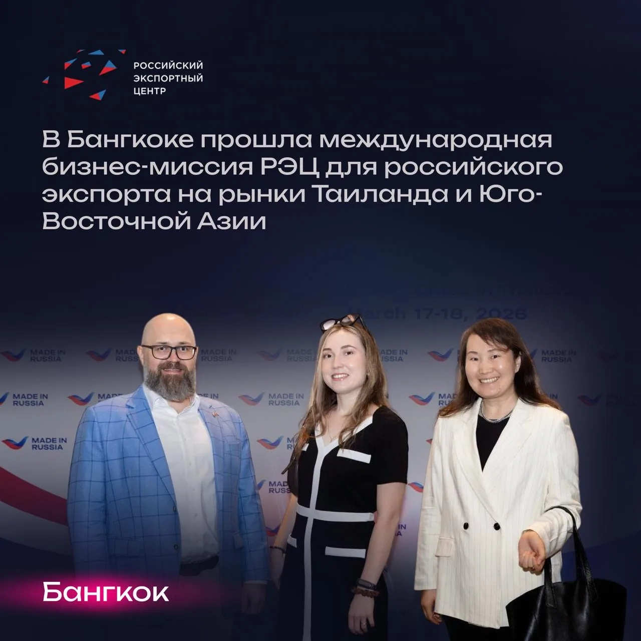 • Сегодня в Бангкоке стартует международная бизнес-миссия РЭЦ (Группа ВЭБ) для российского экспорта на рынки Таиланда и Юго-Восточной Азии