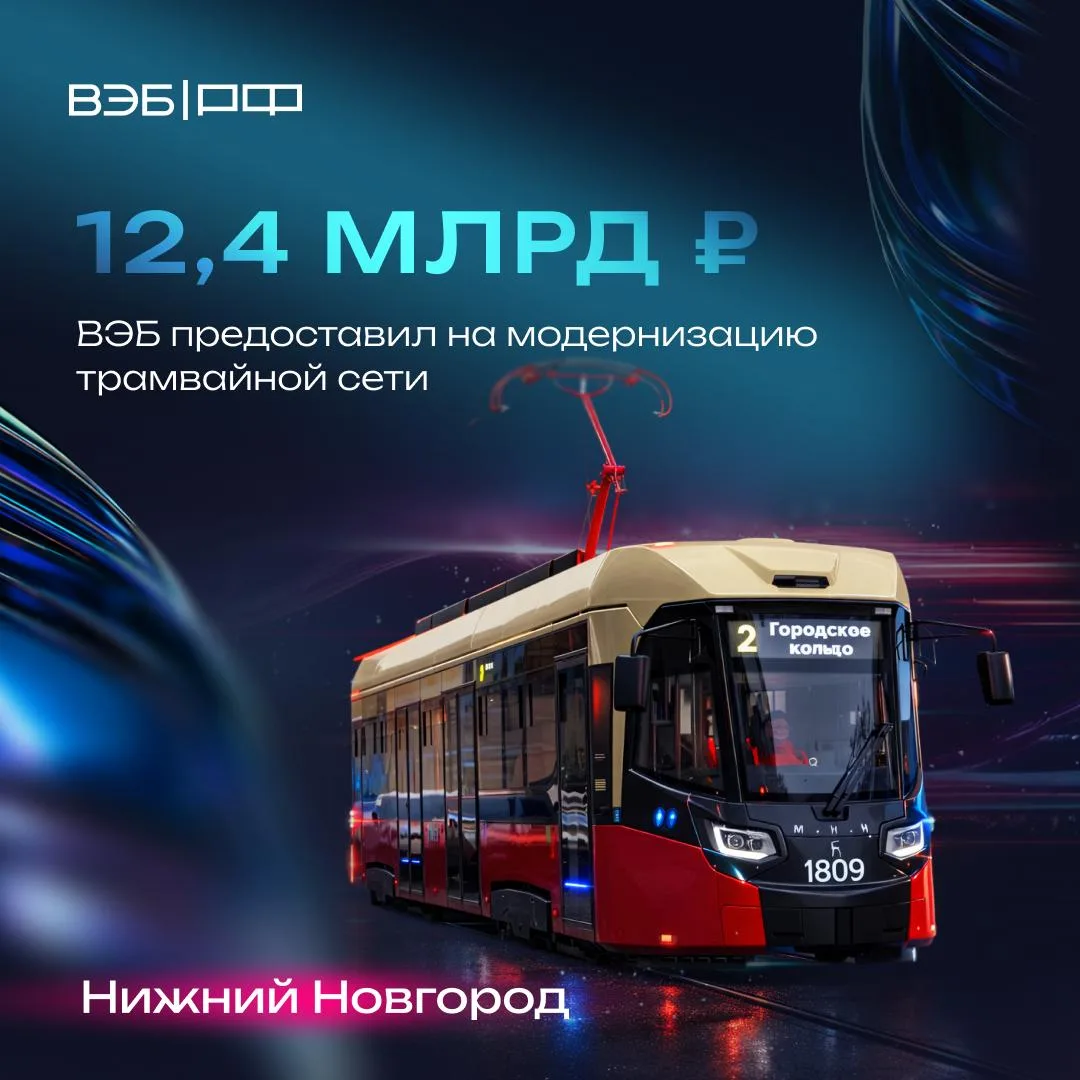 • ВЭБ предоставил очередные ₽ 1,4 млрд на модернизацию трамвайной сети в Нижнем Новгороде.