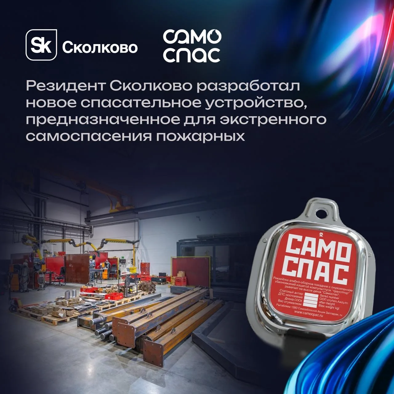 • Резидент Сколково (Группа ВЭБ) разработал новое спасательное устройство, предназначенное для экстренного самоспасения пожарных