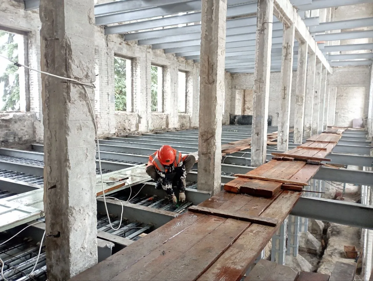 Строители завершают основные демонтажные работы и усиление старых конструкций — это база для дальнейшего обновления здания.