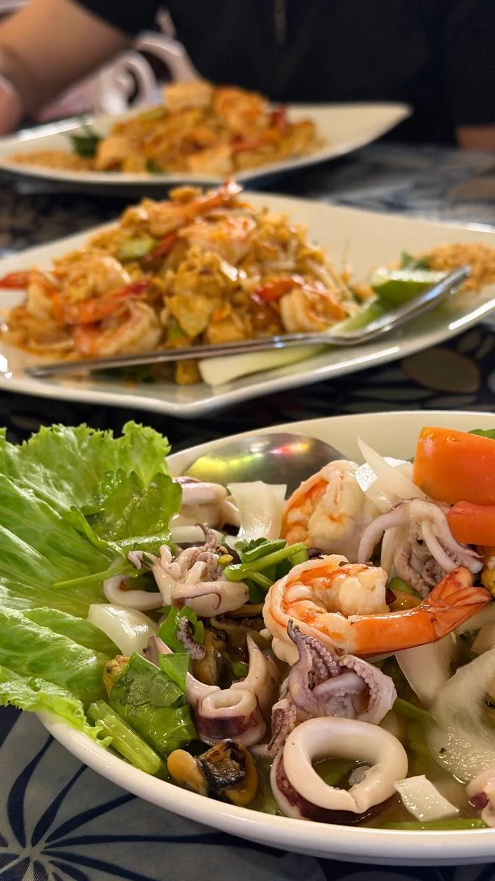 Ударили по морепродуктам, сезон открывали мальчики том-ямом, мы пад-таем и салатами из морепродуктов. Очень вкусная еда здесь, все морепродукты свежайшие, конечно, не сравнить с тем, что мы дома готовим из замороженных.