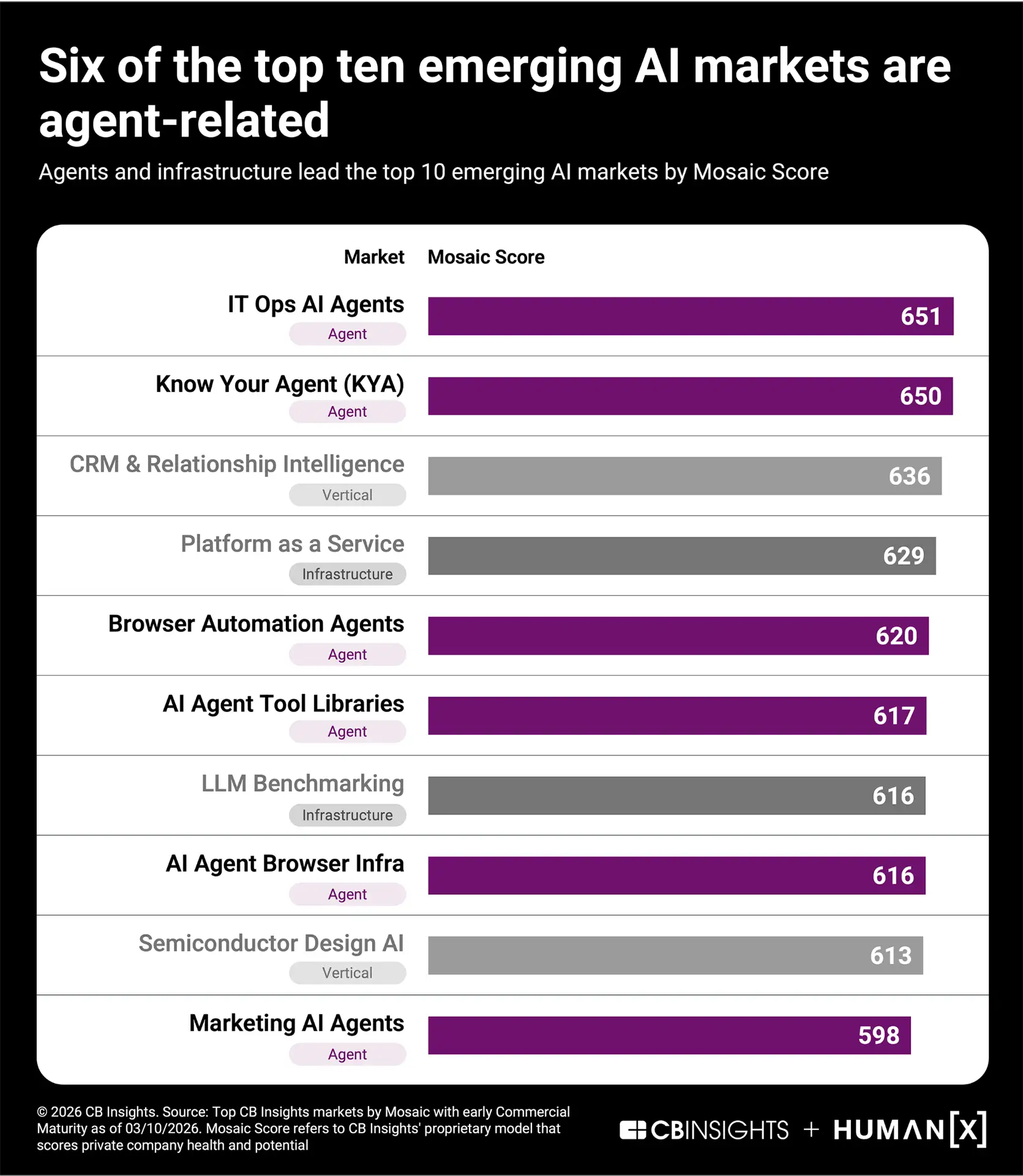 Самый показательный сегмент здесь — Know Your Agent, вышедший на уровень IT Ops AI Agents по метрике CB Insights. Для enterprise это хороший маркер: вместе с агентами быстро дорожают слои контроля, прав доступа, мониторинга и аудита.