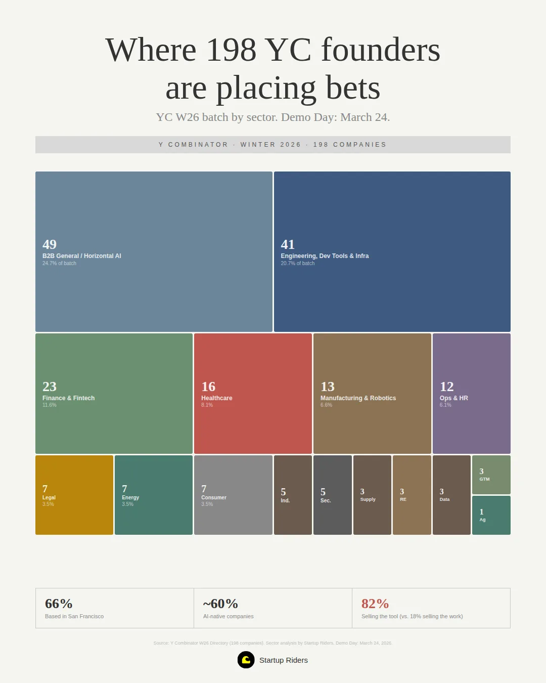 В каких отраслях работают стартапы из зимнего батча YCombinator.