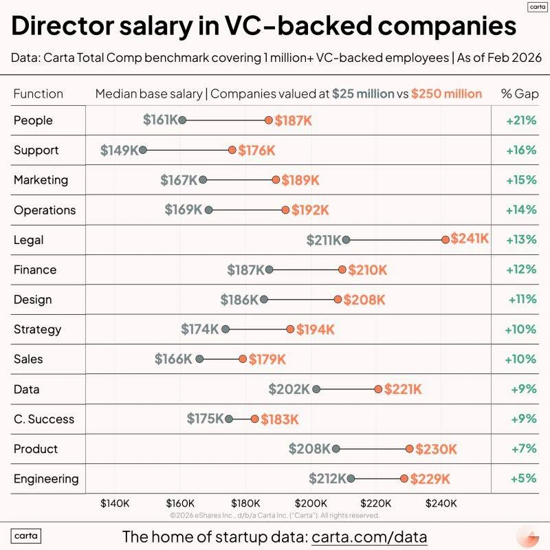 Зарплаты директоров в американских стартапах с капитализацией 25M vs. 250M