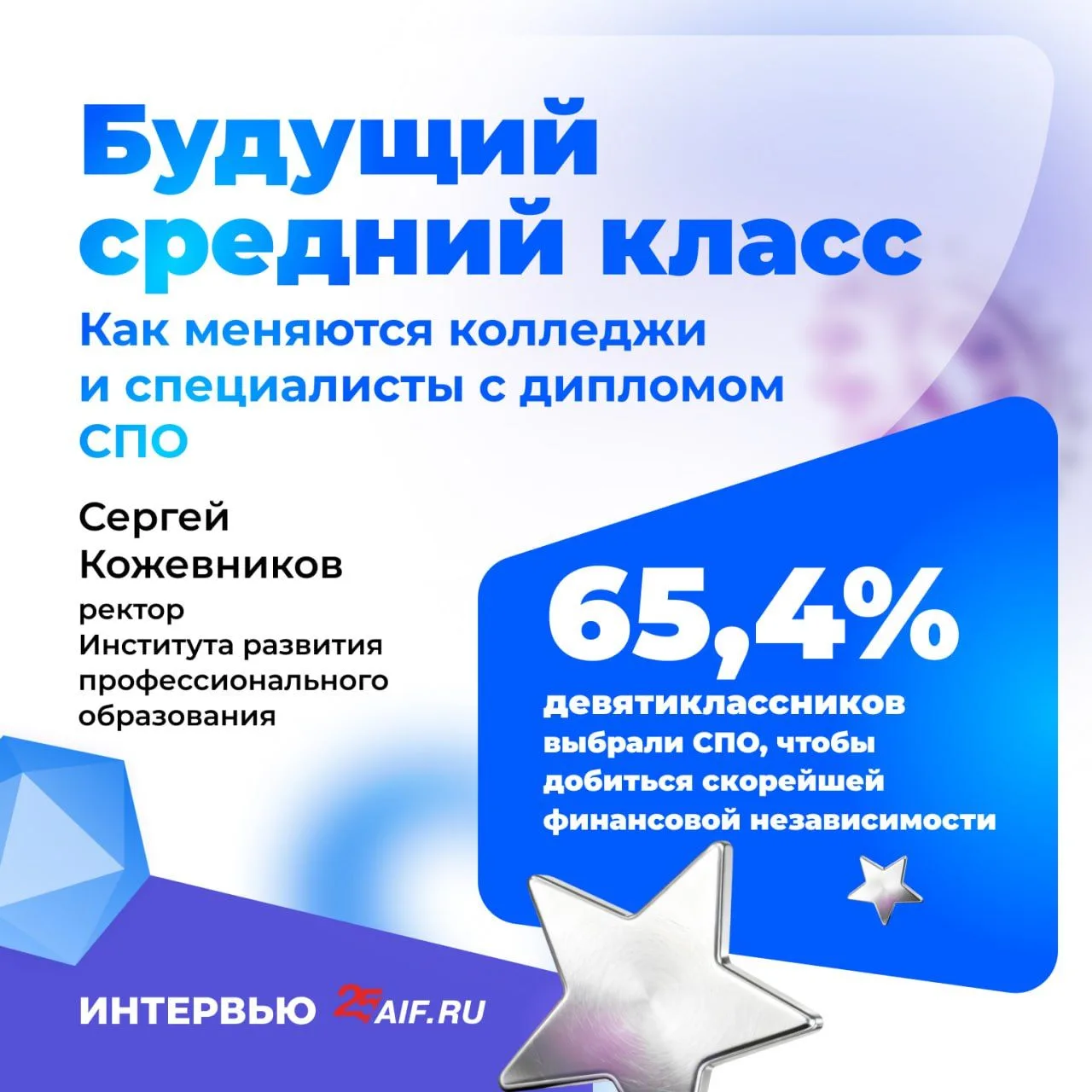 Сергей Михайлович говорит то, что мы, внутри системы, видим каждый день, но редко озвучиваем так смело: “Будущий средний класс - это высококвалифицированные и высокооплачиваемые специалисты с дипломом СПО”. Это не лозунг. Это диагноз и прогноз одновременно. И вот на чём он основан. СПО научилось говорить на языке поколения Z - языке конкретики и независимости.
