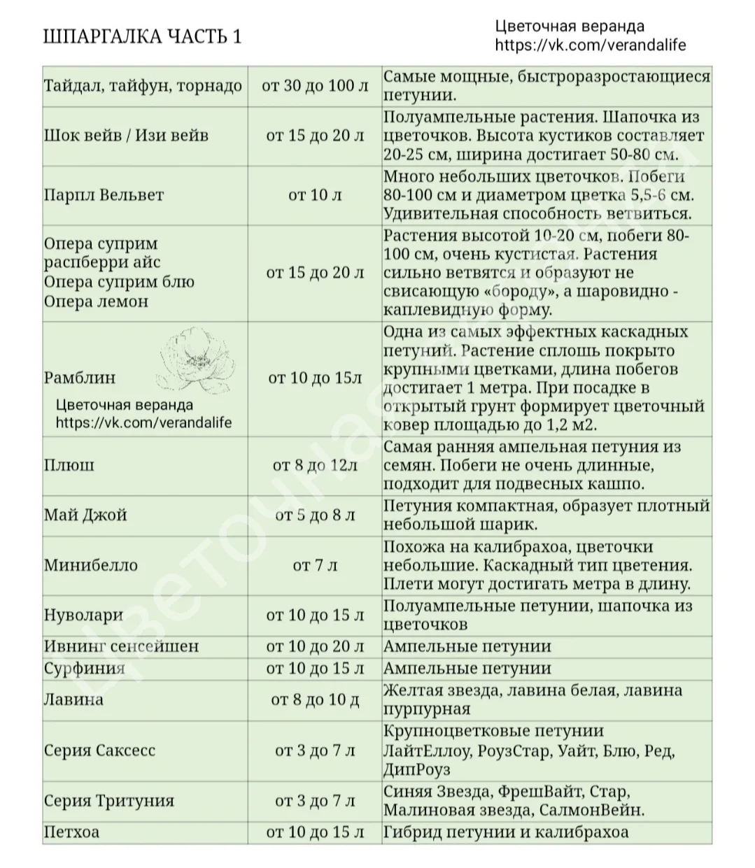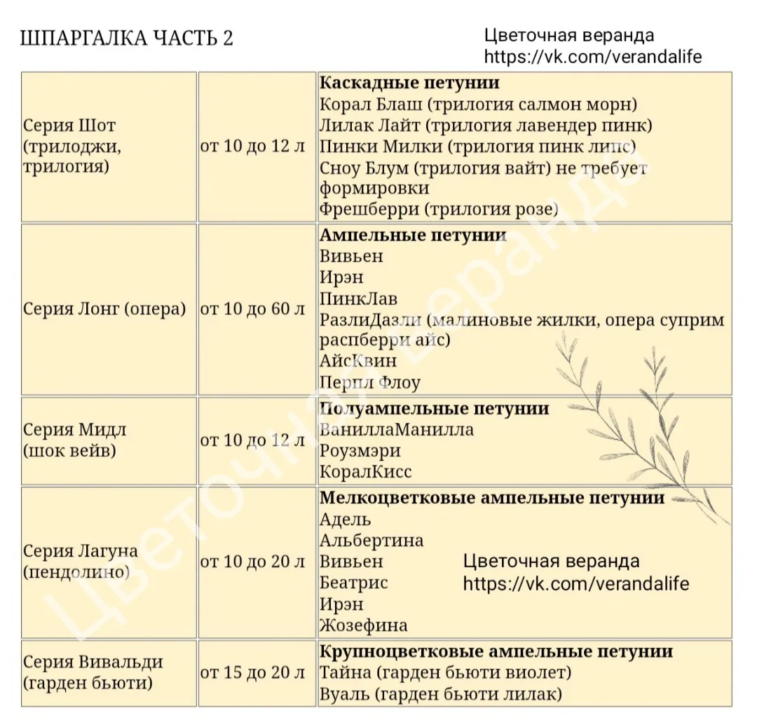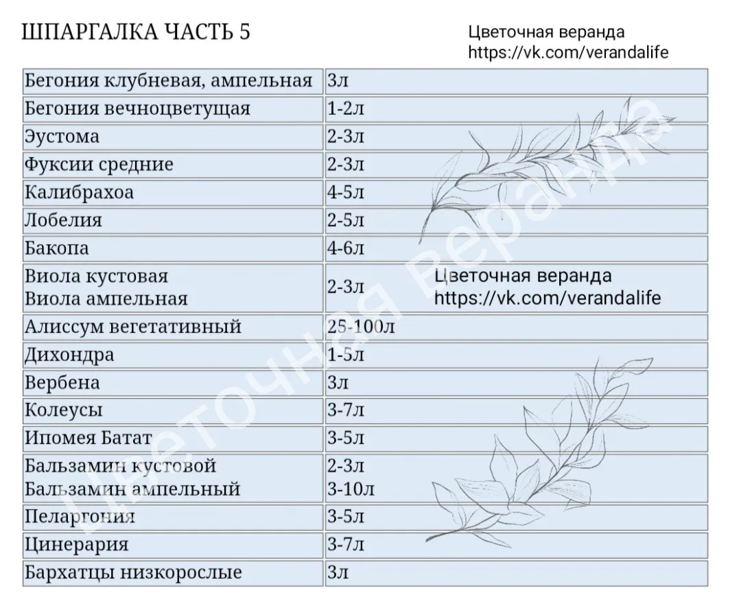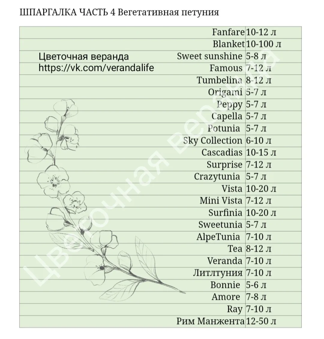 Шпаргалка по объемам кашпо для разных сортов петуний и других растений 🌸