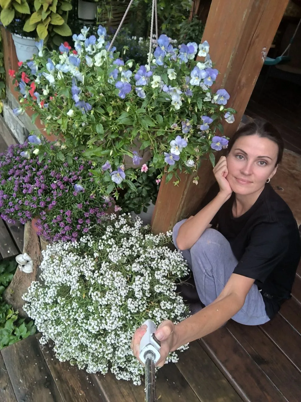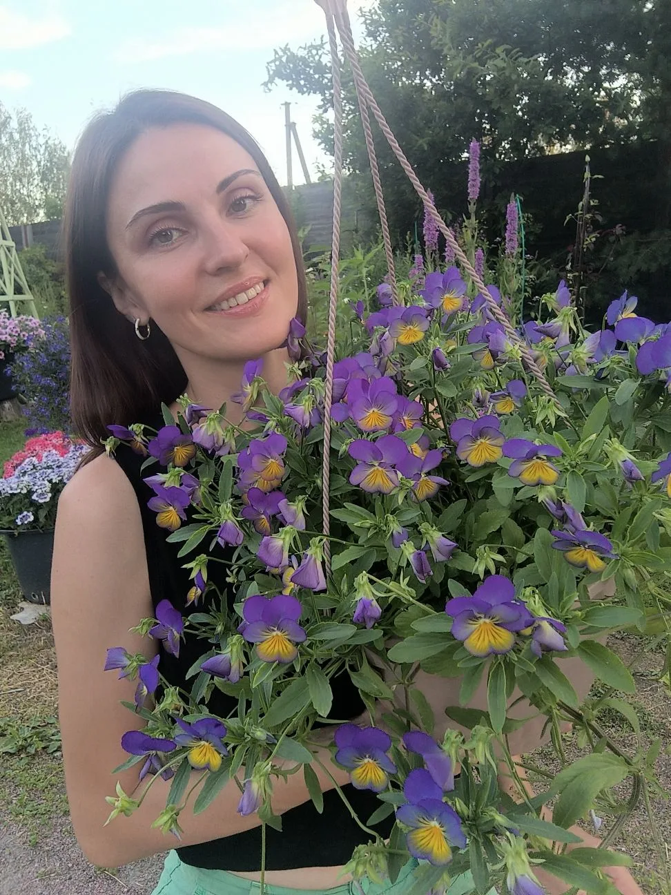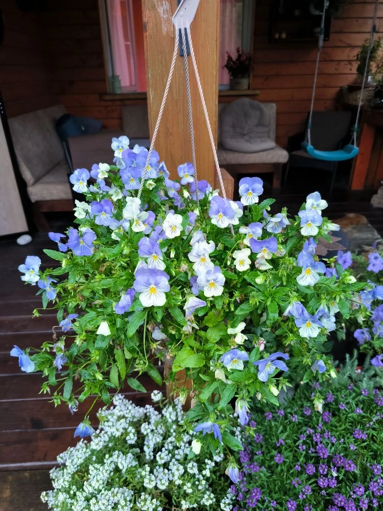 У меня к ней особая любовь, из детства. Бабушка выращивала анютины глазки, тогда под названием виола был известен только плавленный сыр. Конечно, раньше и не знали, что появятся ещё и ампельные сорта, а сегодня мы можем насладиться этим каскадом забавных обезьянок.