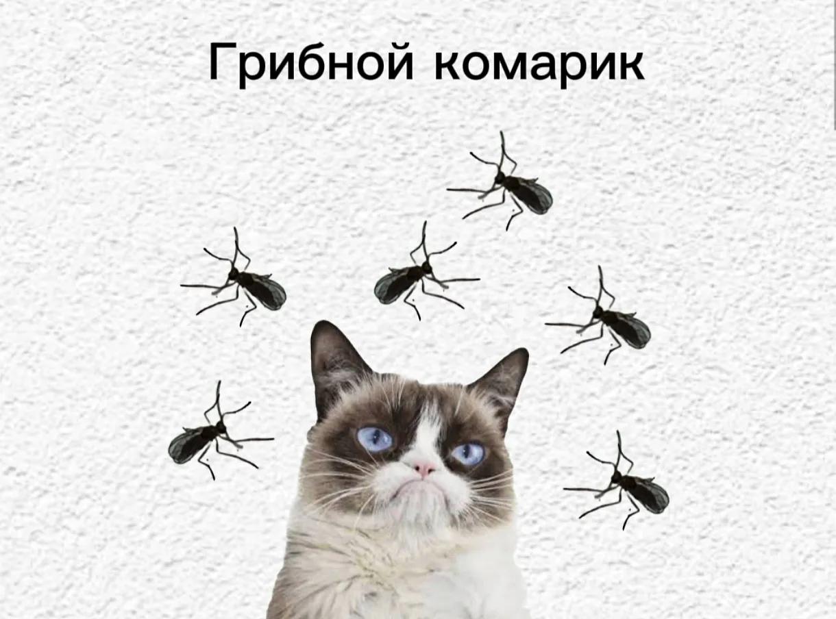 Р.S. На фото реальный грибной комарик увеличенный под лупой и размноженный в фоторедакторе 😊