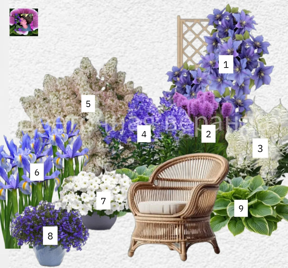 Захотелось пофантазировать! Представляю себе на своем участке такой чудесный уголок. Мне очень нравятся сочетания синего и белого – это так красиво и гармонично смотрится. Как будто морской бриз или летнее небо.