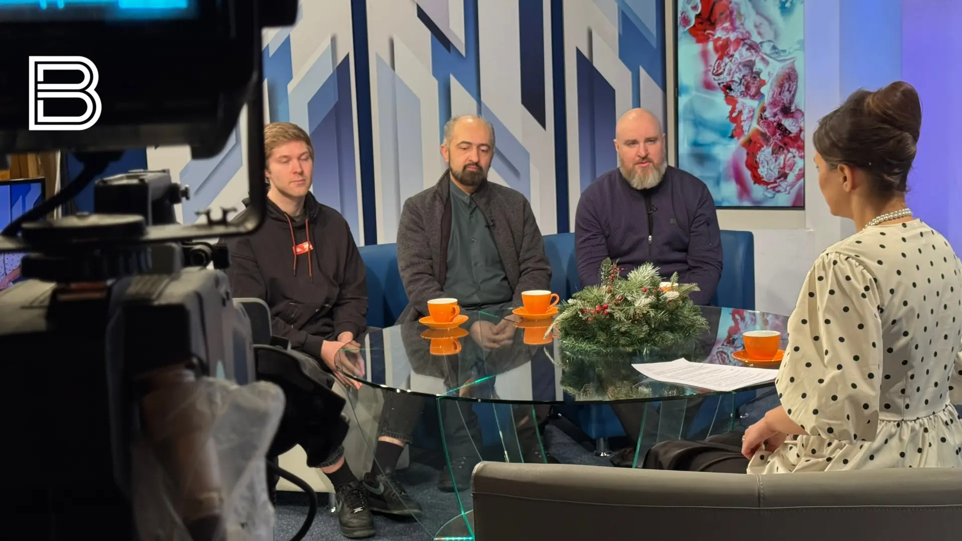 Художественный руководитель и автор проекта Ашот Хоецян, виолончелист и солист ансамбля Илья Досяк, барабанщик, солист Сергей Дудецкий рассказали ведущей Ксении Нестеровой о кодексе дружбы в коллективе, своей профдеформации и поделились секретами бодрого утра.