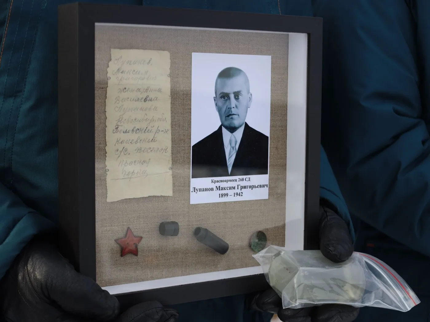 Как рассказали в пресс-службе министерства образования Кузбасса, останки Максима Григорьевича в ноябре 2025 года нашли петербургские поисковики. Также отыскали принадлежавший красноармейцу стеклянный флакон с дегазирующей жидкостью и гранёную капсулу солдатского медальона с бумажным вкладышем.