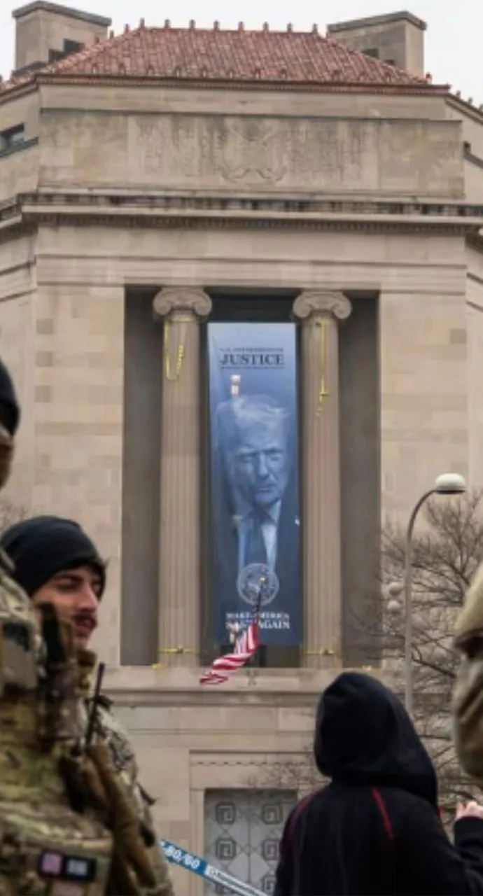 Культа личности в США нет. Гигантский плакат на здании Минюста в Вашингтоне, которое, кстати, носит имя Кеннеди. Не пора ли переименовывать?