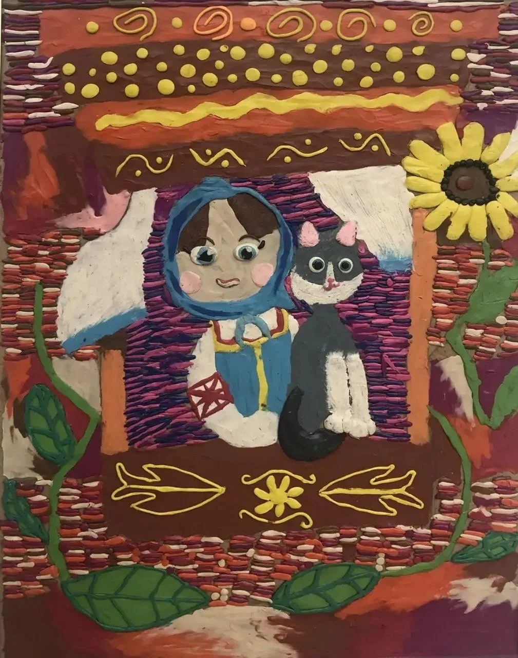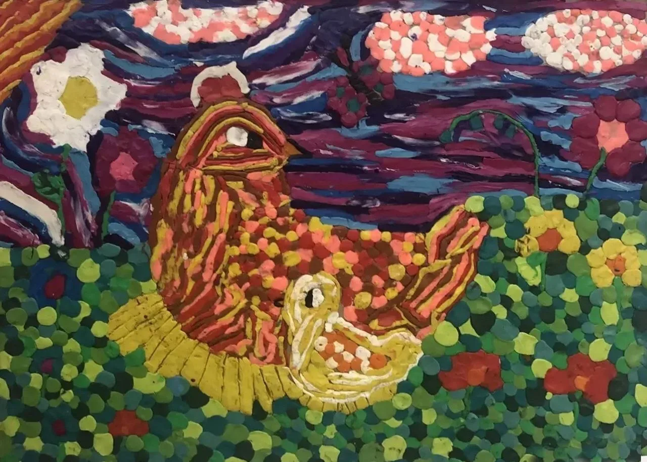 ▫️Работы выполнены в технике пластилинографии — это живопись пластилином, где изображение создаётся путём размазывания материала по твёрдой основе. Цветные мазки наслаиваются друг на друга, образуя выразительный объём и фактуру.