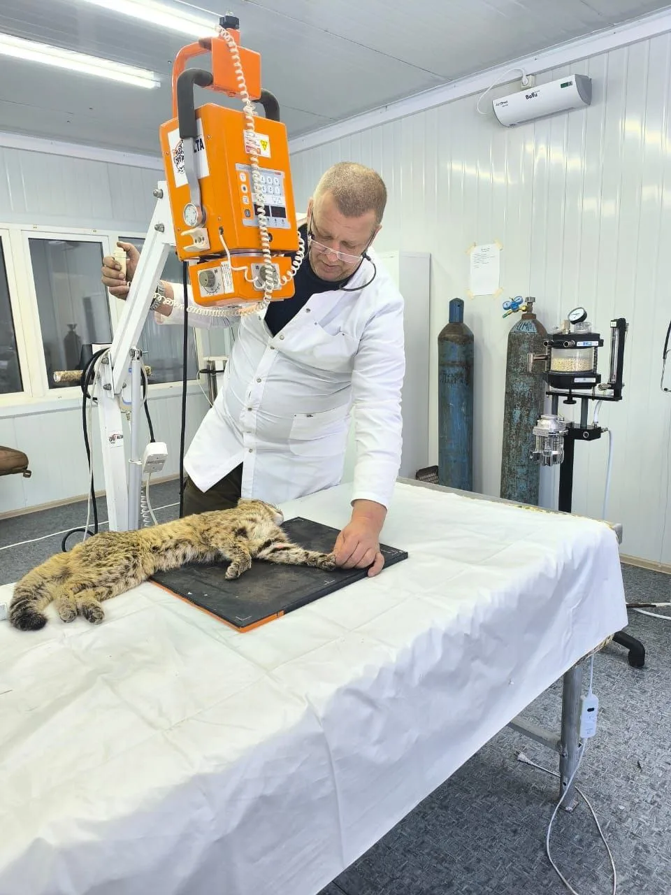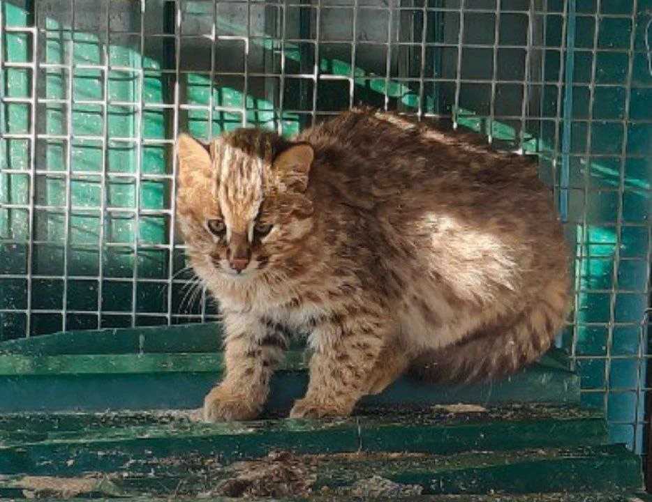 Дикого дальневосточный кота нашли сильно ослабленным и с переломанной передней лапой.