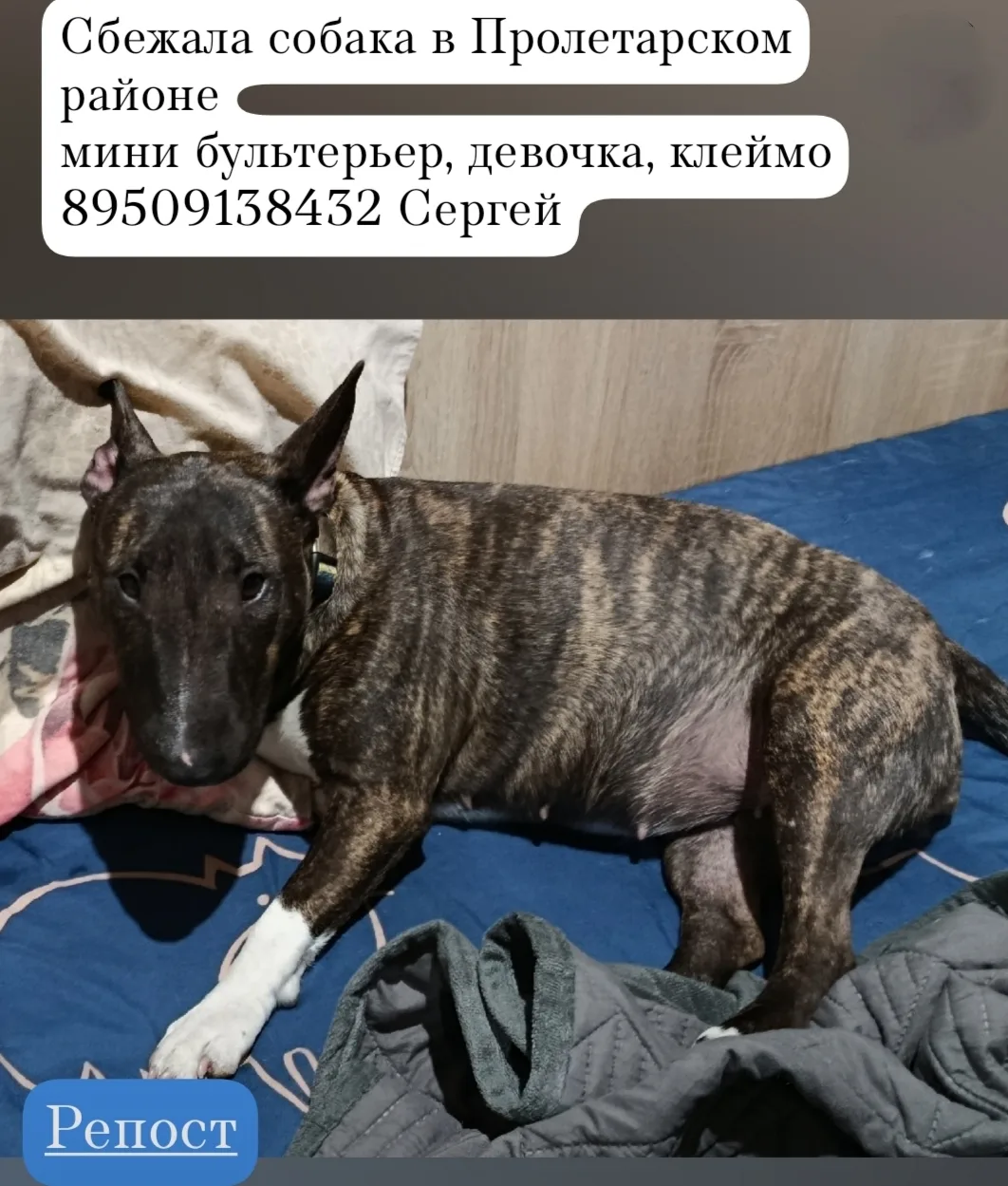 Потеряшку бультерьера нашли: