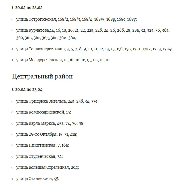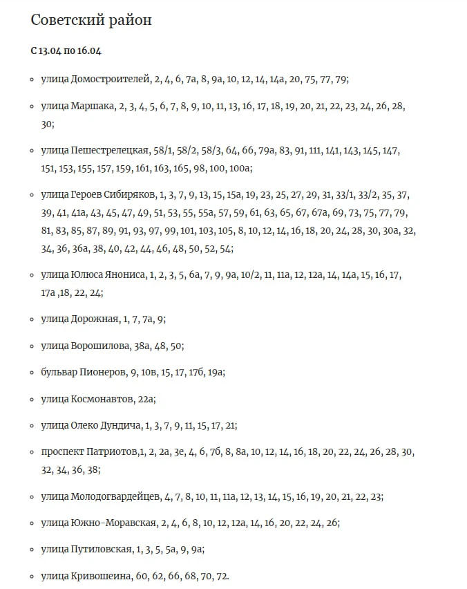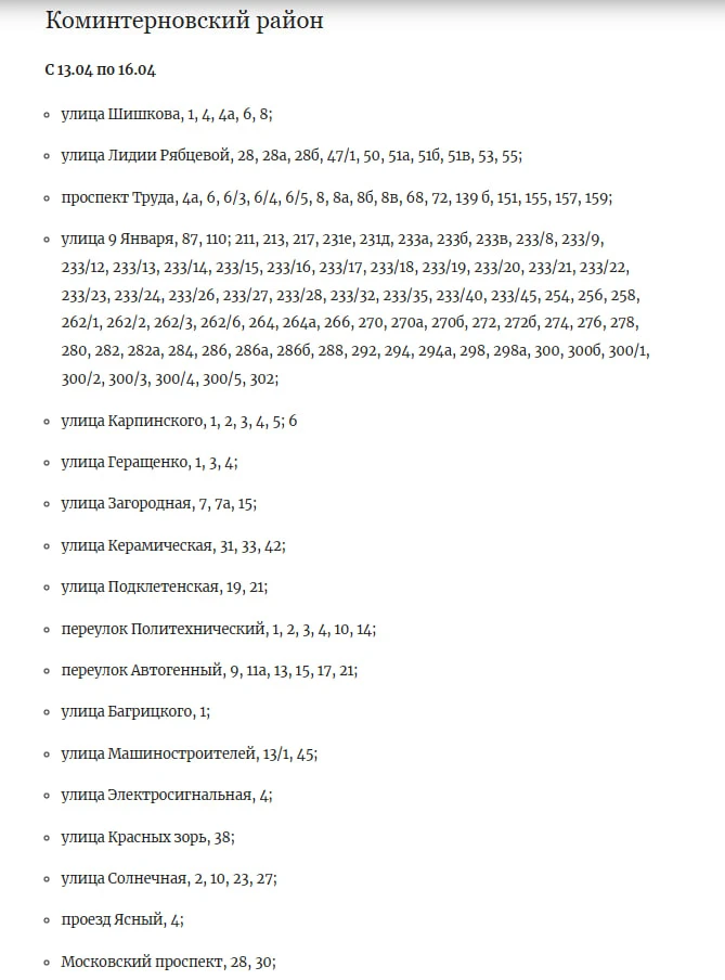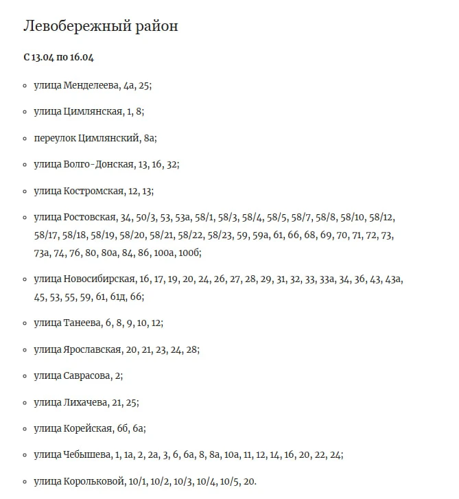 💦Где отключат горячую воду с 13 апреля?