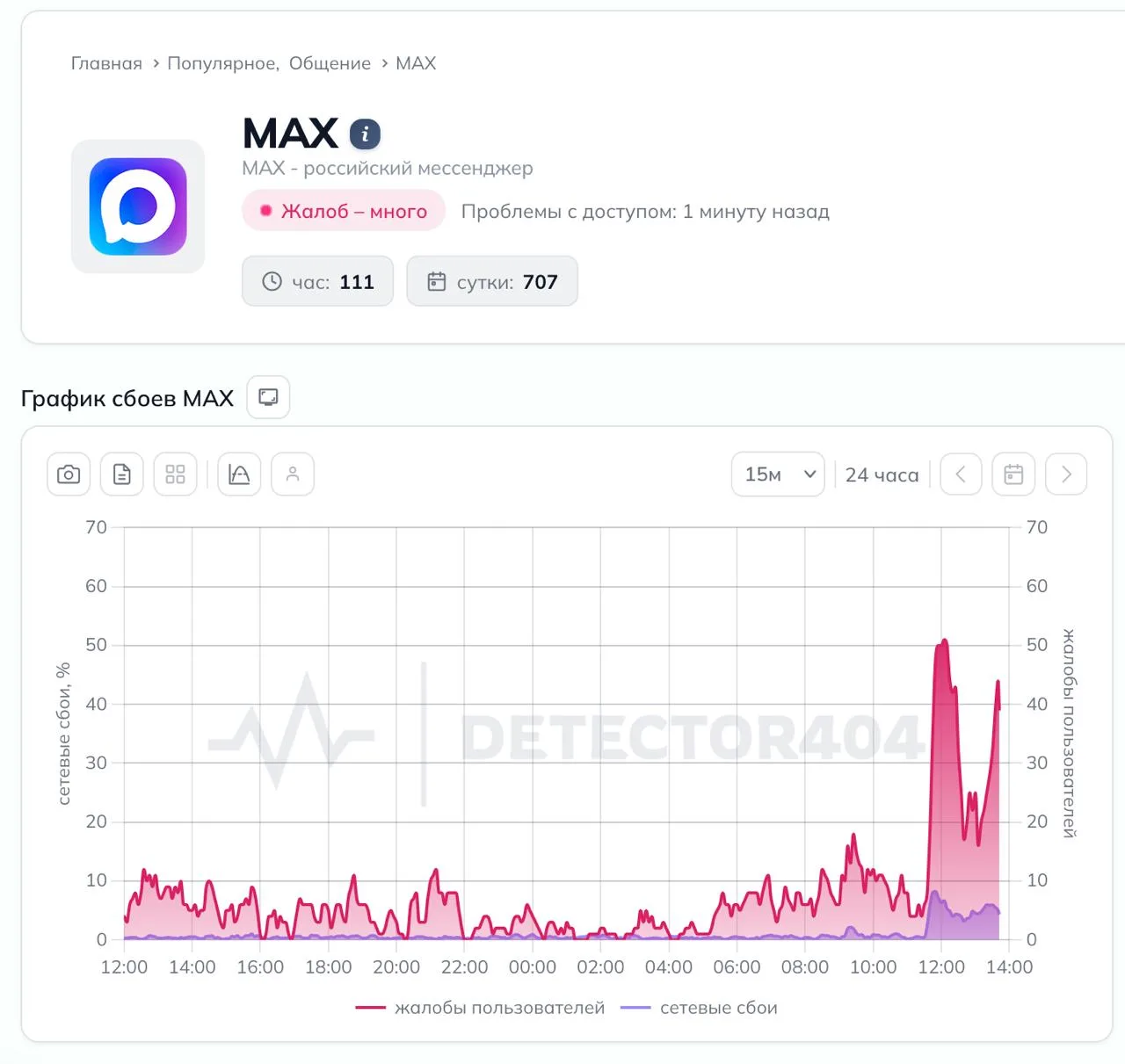 Пользователи массово сообщают о сбоях в работе мессенджера. Санкт-Петербург при этом вошёл в пятёрку регионов с наибольшим числом жалоб.