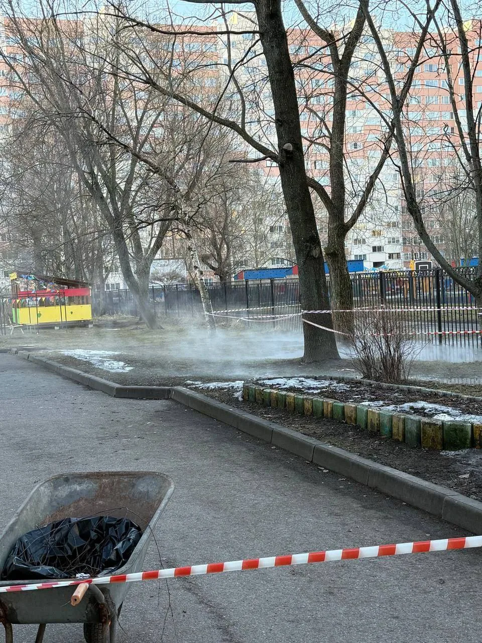 12 марта на территории детского сада №60 произошёл прорыв трубы с горячей водой.