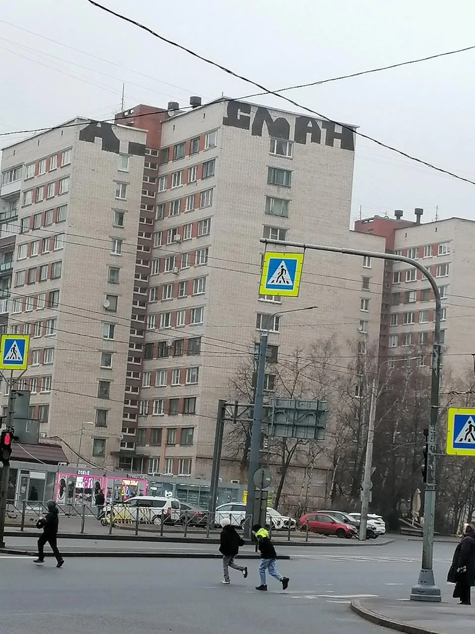 Уже давно по всему проспекту Ветеранов появляются большие граффити с именем «АСЛАН» — мужским именем тюркского происхождения, означающим «лев».