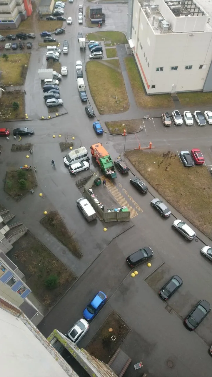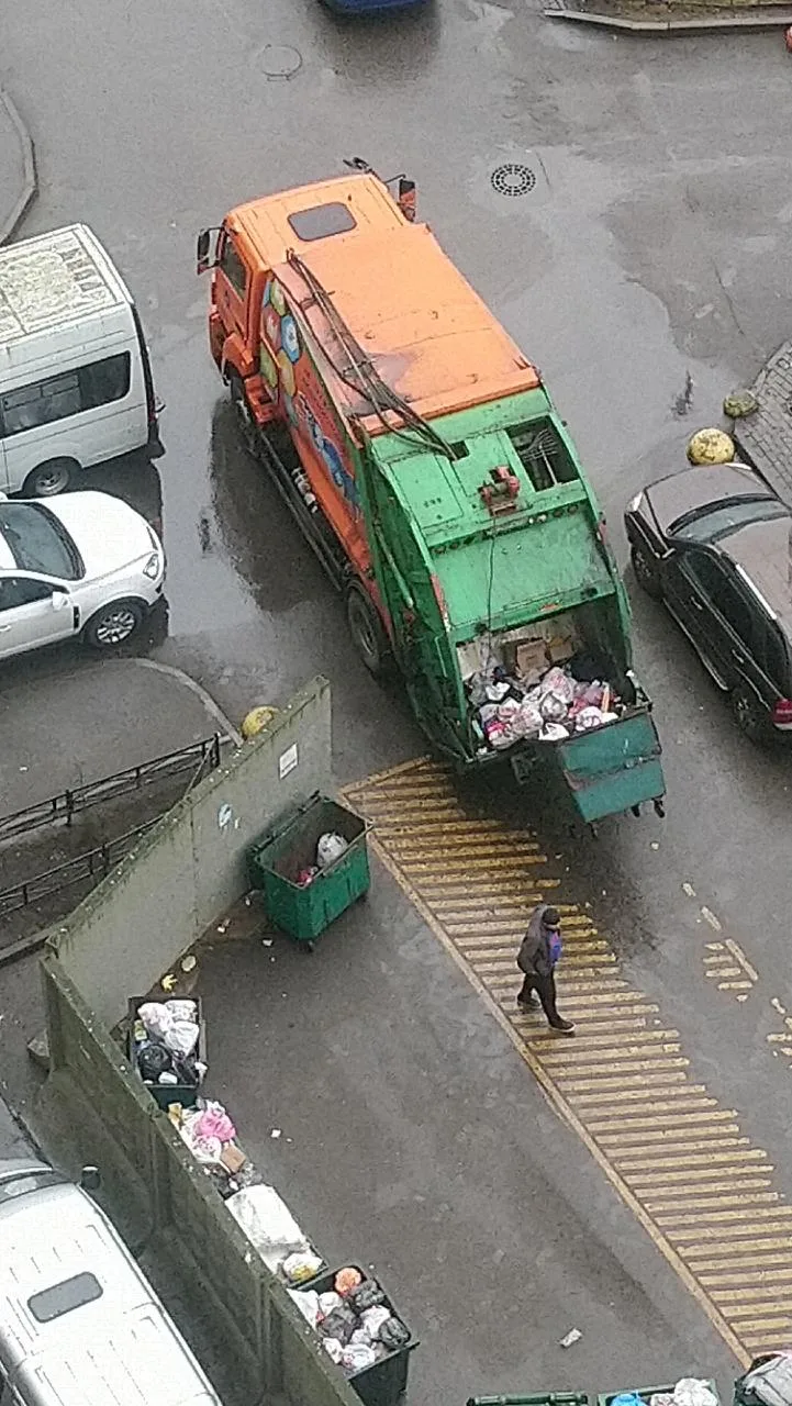 «Экологическая катастрофа около дома 51 по Ленинском пр-ту, у мусоровоза лопнул шланг гидравлика и всё масло растиклось по всей придомовой территории! Люди на ногах носят масло домой!
