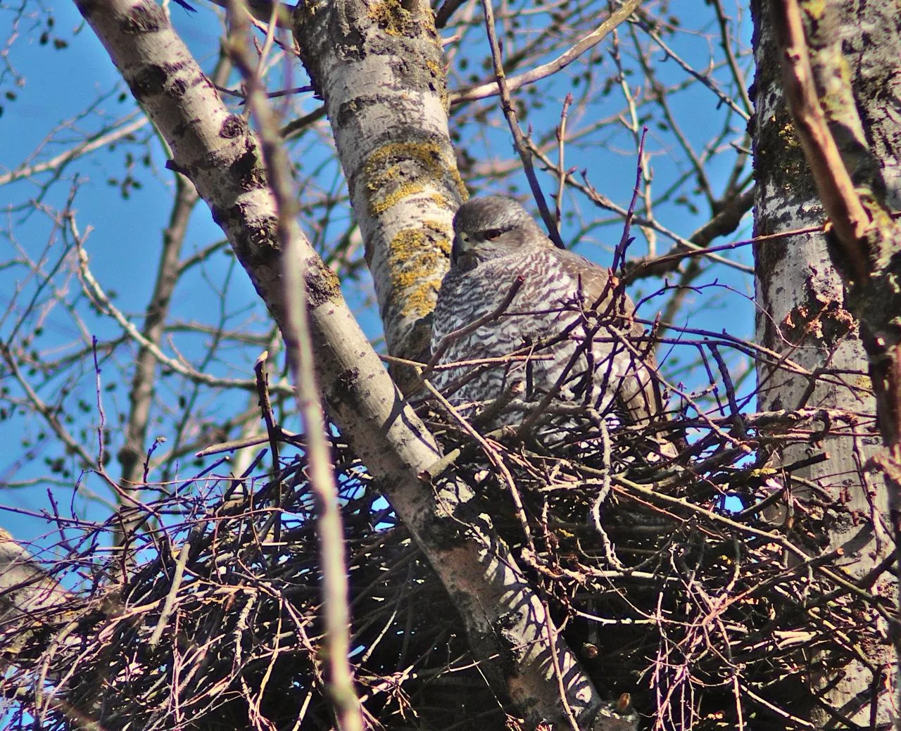 Самка ястреба-тетеревятника начала высиживать яйца в парке.