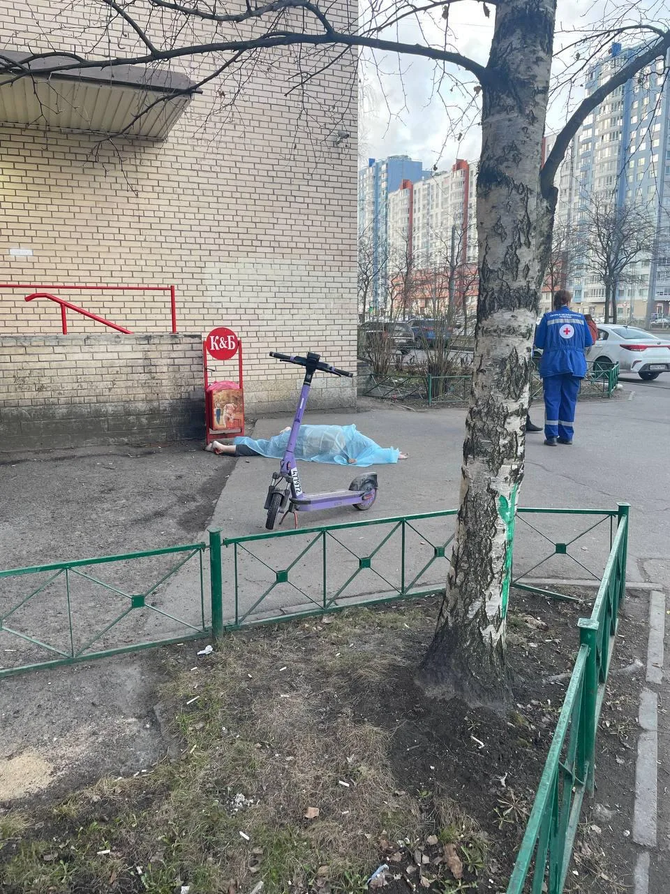 По словам очевидцев, всё случилось рядом с магазином на углу дома. Было ли это падение или мужчина сам перелез — пока неизвестно.
