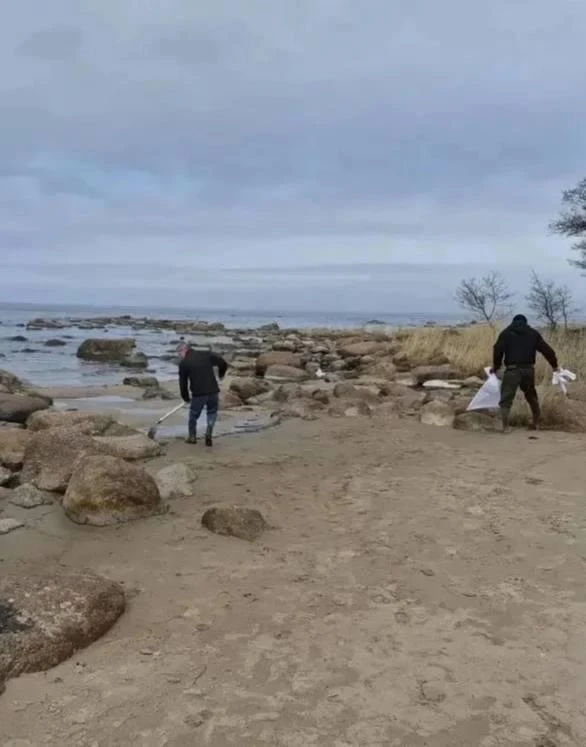 На берегу Финского залива весь день убирали нефтепродукты.